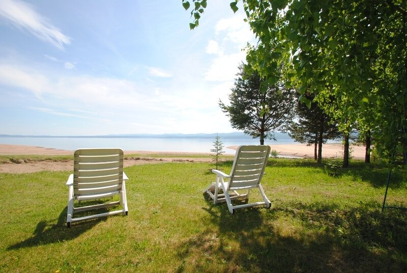 На берегу располагается спортивная площадка для волейбола и мини-футбола, а для желающих есть возможность уплыть на лодке в девственные места тайги или порыбачить (все принадлежности для рыбалки можно взять напрокат).