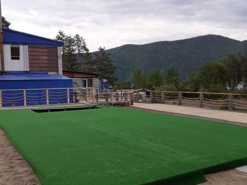 На летней террасе можно поваляться на зеленой травке и погреться на солнышке. Для маленьких детей имеется детский игровой комплекс и бассейн.