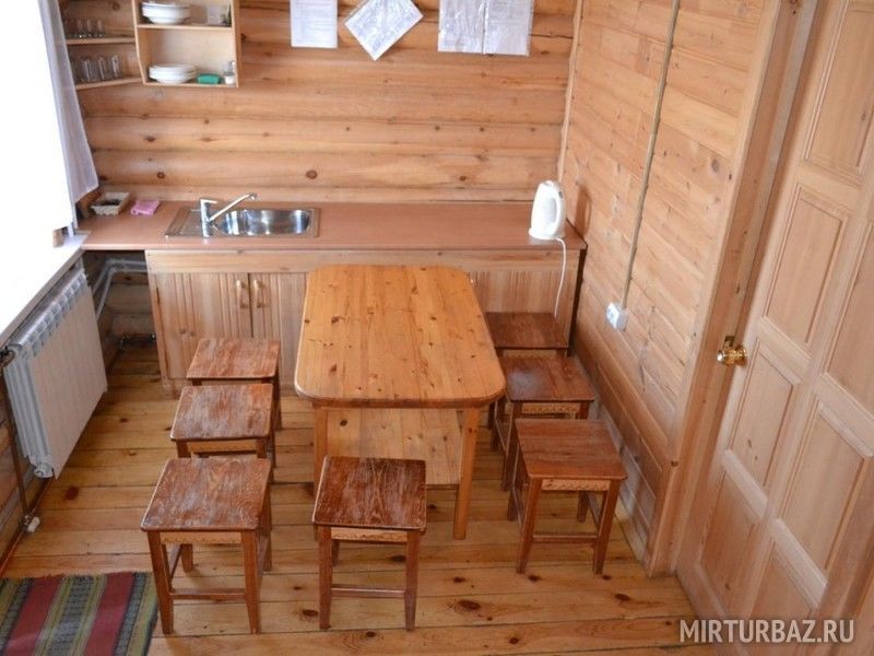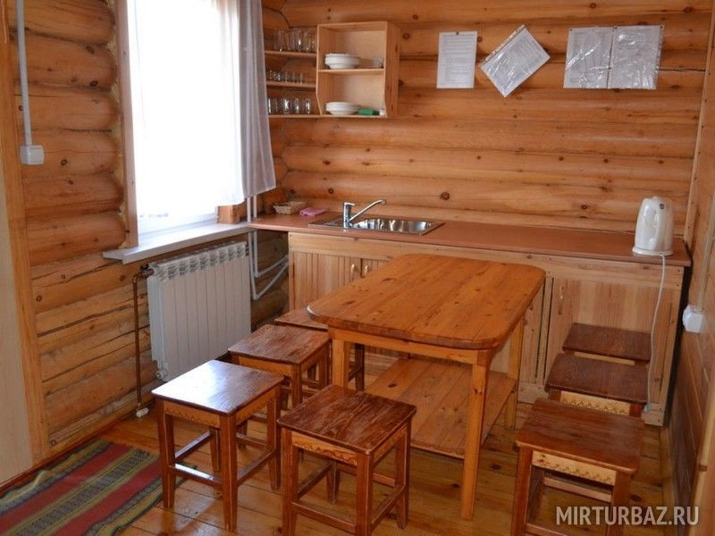 Турбаза состоит из трех благоустроенных домов разной вместимости и здания кафе с номерами. На территории турбазы есть кафе, баня с летним бассейном. Все дома отапливаются центральным отоплением.