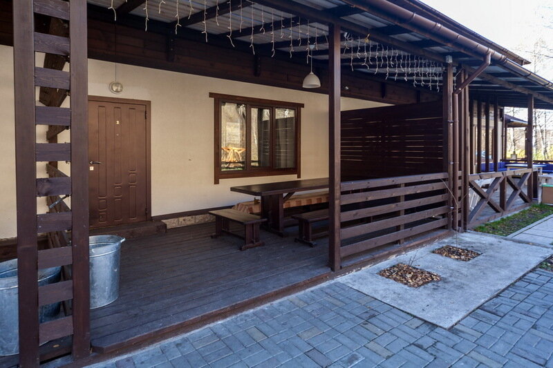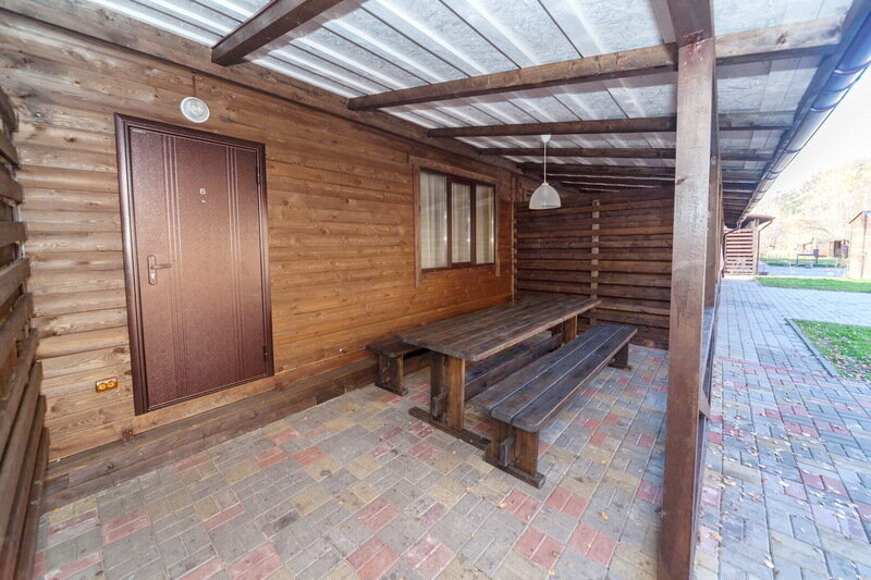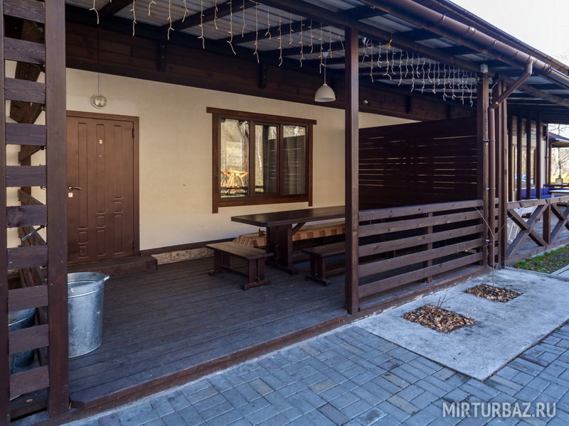 Для отдыха на воздухе есть открытая веранда с мебелью и мангалом.