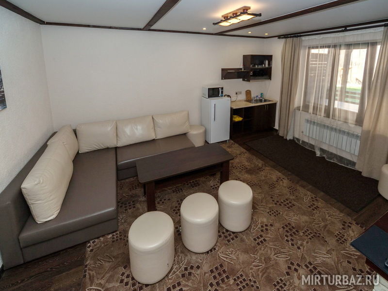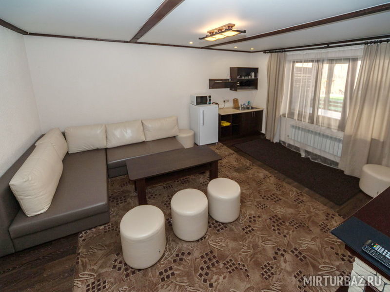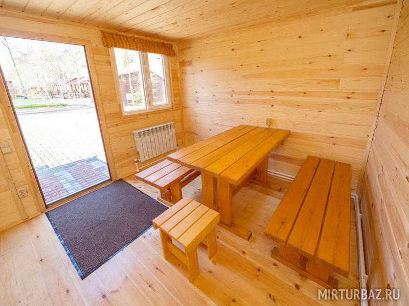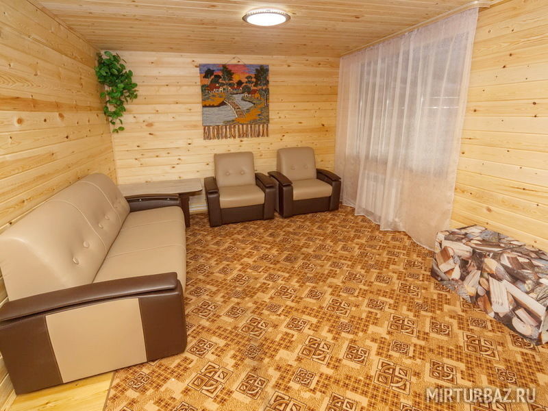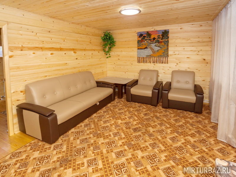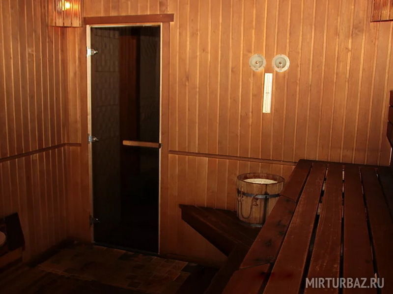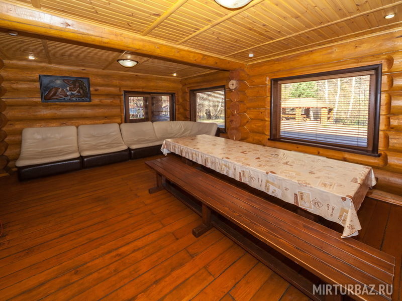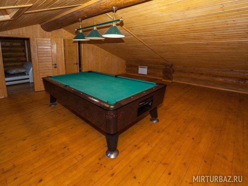 Большая баняЧитать полностьюВ бане может комфортно разместиться компания 20 человек. На 1 этаже находится большая комната отдыха с телевизором и мягкой мебелью, парная (3х4 м), душевая кабина, бассейн (3х2.5 м ),санузел, кухонный уголок, холодильник, микроволновая печь, чайник, посуда. На 2 этаже большой холл с мягкой мебелью, бильярд, 2 спальни в каждой двуспальная кровать. Стоимость аренды бани: - с понедельника по четверг — 1500 руб./час;