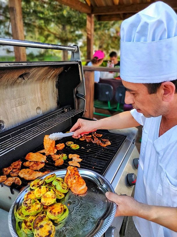 Продукты Вы можете привезти с собой и приготовить их на мангале или же заказать у шеф-повара.