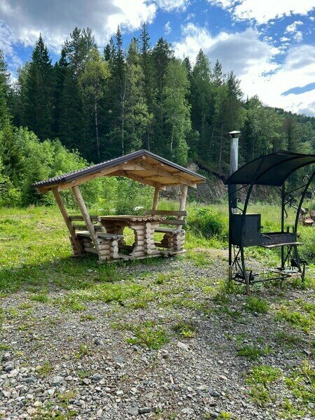 Беседки с мангальной зоной в окружении хвойного леса, реки и горного ручья.