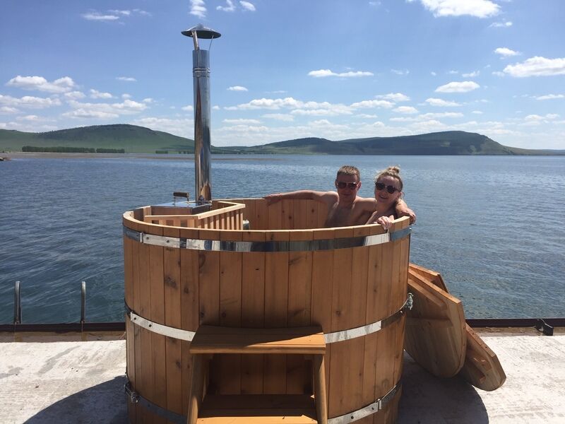 Все прелести сауны на берегу озера — выбежать после парилки и окунуться в прохладную воду - одно из благоприятных процедур для закалки и оздоровления организма.
