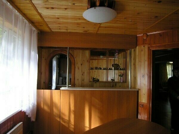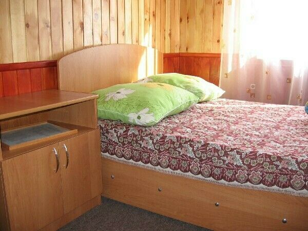 Дом 1. Две комнаты и кухня на первом этаже, третья комната на втором этаже. Двухспальные кровати, тумбочки, постельное белье. Отопление масляными радиаторами.