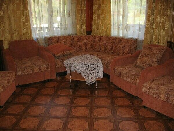 Дом 2. Расположен в 20 метрах от первого домика. 2 комнаты, в одной 2 дивана, во второй один диван, имеется обеденный стол, скамьи, вешалки из одежды, прикроватные тумбочки, постельное белье. Отопление масляными радиаторами.