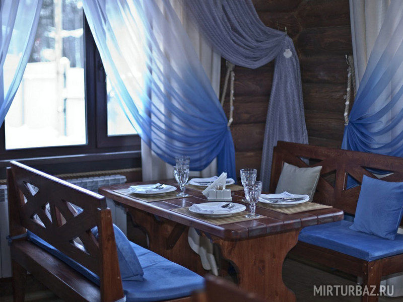 На территории работает великолепный трактир Shellback. Замечательная кухня от одного из лучших поваров Красноярска, великолепный бар, и уютная обстановка не оставят равнодушными никого.