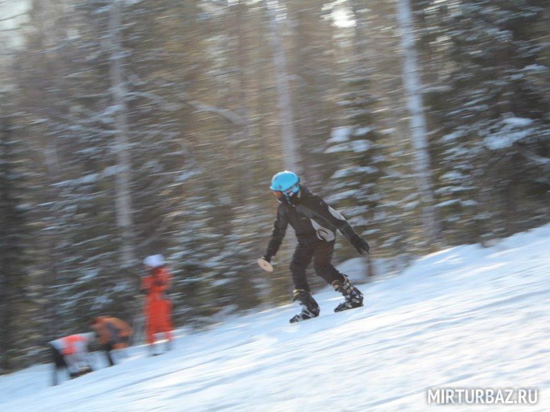 - Горнолыжные трассы прорублены прямо среди тайги. Длина трасс составляет от шестисот пятидесяти до тысячи ста метров. Трассы имеют перепад высот от двухсот до двухсот пятидесяти метров.