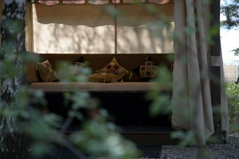 В холодный осенне-зимний период посетители базы могут отдохнуть в теплой закрытой беседки, вместимостью 20-ть человек, а в жаркое время воспользоваться открытой летней беседкой или рядом с ней расположенной уединенной зоной отдыха с мягкими подушками. Также на территории построена настоящая русская банька с большой террасой, печью, в которой находятся камни с целебными свойствами, и теплой купелью на свежем воздухе.