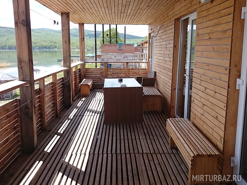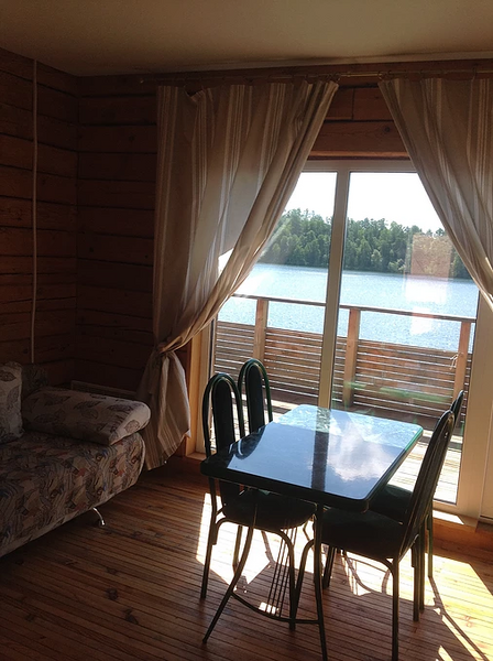 На 2 этаже расположен люкс двух-комнатный с отдельным входом. В гостиной имеется кухонная зона с набором посуды и бытовой техникой, цифровое телевидение, просторная терраса с видом на озеро, сан.узел с душевой кабиной. Спальня укомплектована мебельным гарнитуром и кондиционер.