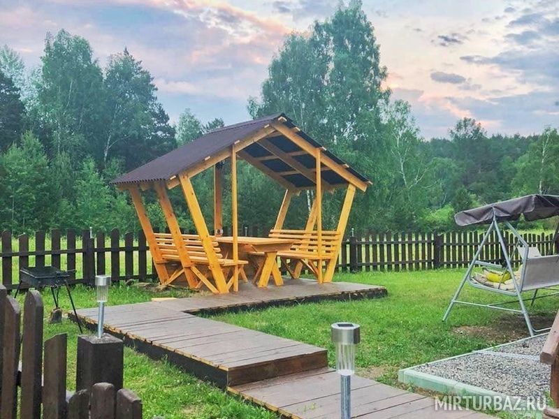У дома имеется собственная беседка и мангал, где Вы сможете приготовить все что пожелаете, от шашлыка до запеченой картошки. Так же у коттеджа есть мини бассейн, который позволит Вашим детям целый день плескаться в воде, не переживая за них, так как глубина бассейна 66 см, а диаметр 2,5 м. Вы и сами можете искупаться в этом бассейне, а затем позагорать на лежаке, который мы любезно Вам предоставим.
