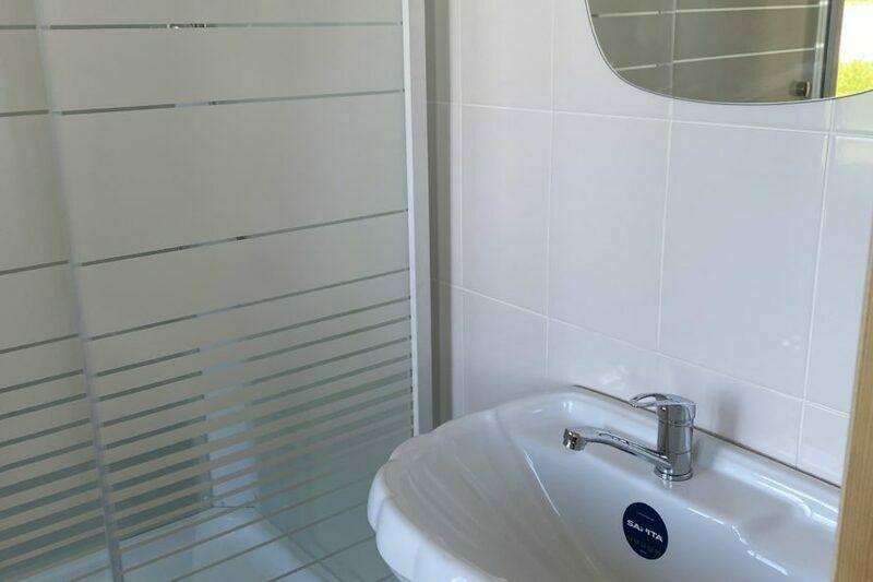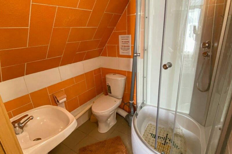 В санузле: душевая кабина, раковина, унитаз, набор для душа ( шампунь, гель), набор для чистки зубов и бритья. Для каждого проживающего в домике по два полотенца.
