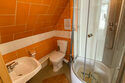 Санузел с холодной и горячей водой, а также душевой кабиной.