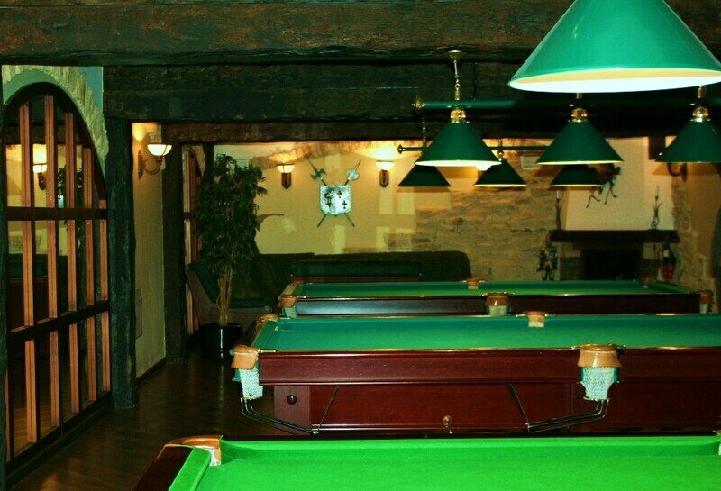 Для развлечения клиентов имеется большой, бесплатный видеозал, настольный теннис, бильярдная с камином, тренажерный зал. Для детей - игротека с настольными играми. Также построены лыжные трассы, горки, каток и работает прокат спортинвентаря. Можно воспользоватся услугами опытного инструктора.