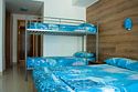 Четырехместный номер с двуспальной и двухъярусной кроватью, французским балконом, оборудованный необходимой мебелью, санузлом с душевой кабинойУслуги и удобства