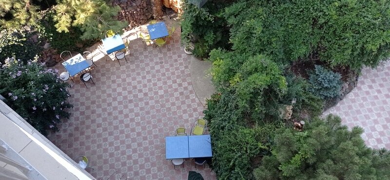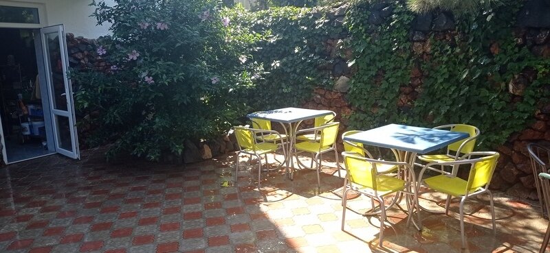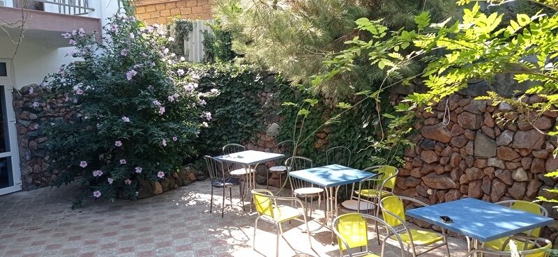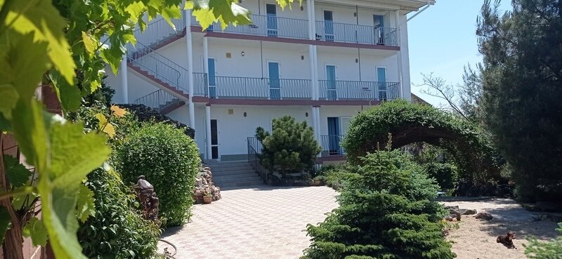 Трехэтажный корпус гостевого дома разместился на закрытой территории всего в 200 метрах от морского побережья. Территория благоустроена: разбиты клумбы, высажены реликтовые южные растения, есть скамейки для отдыха. В распоряжении гостей стандартные номера с удобствами, часть из которых оснащена кондиционерами. Номера оснащены необходимой мебелью, имеют холодильник , телевизор, кондиционер ( не во всех номерах). Для удобства отдыхающих в гостевом доме ежедневно работает столовая, также есть оборудованная посудой и техникой общая кухня и зона барбекю с мангалами. Сред услуг — сеть wi-fi и парковка. Юные гости могут порезвиться на игровой площадке и поплавать в небольшом детском бассейне.