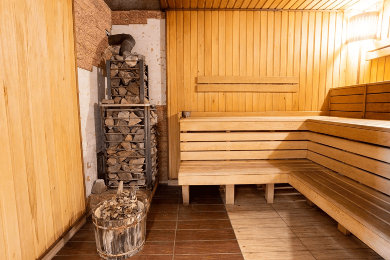 Инфраструктура: тапочки, бассейн, купель, зона отдыха, полотенца, простыни, шапочки, обливное ведро, душНаша банька на дровах может вместить до 10-12 человек.- Отличная парная