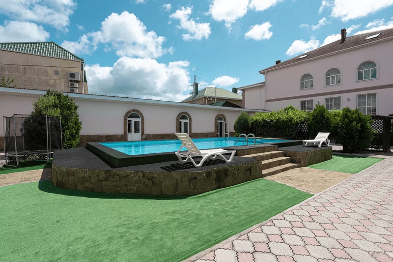 Гостевой дом «Адмирал-клуб» расположен в экологически чистом месте, в поселке Заозерном. Расстояние до моря составляет 400 метров. Гости отдыхают у бассейна с зонтиками и шезлонгами. На всей территории работает интернет.