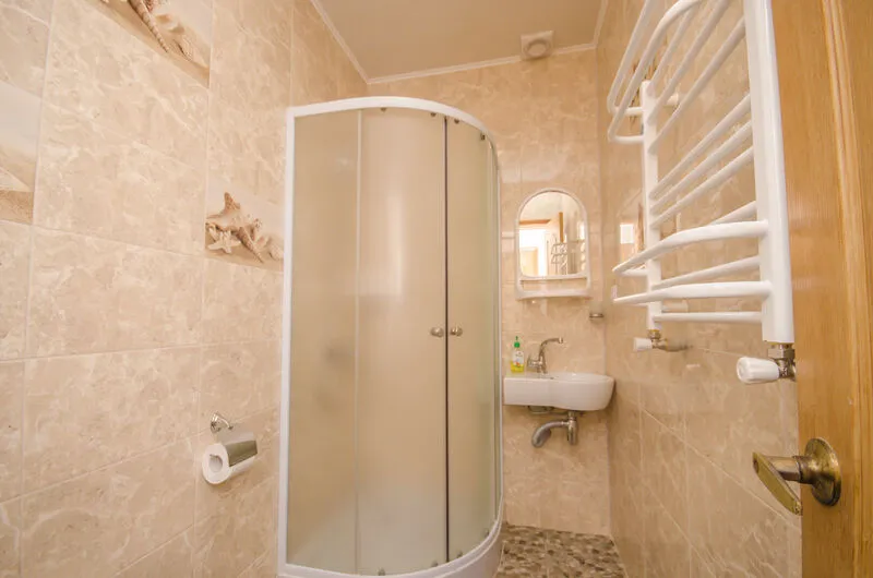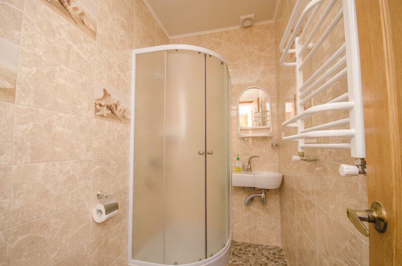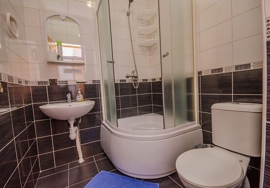 Санузел - просторная душевая кабина, с гигиеническим набором и набором текстиля.