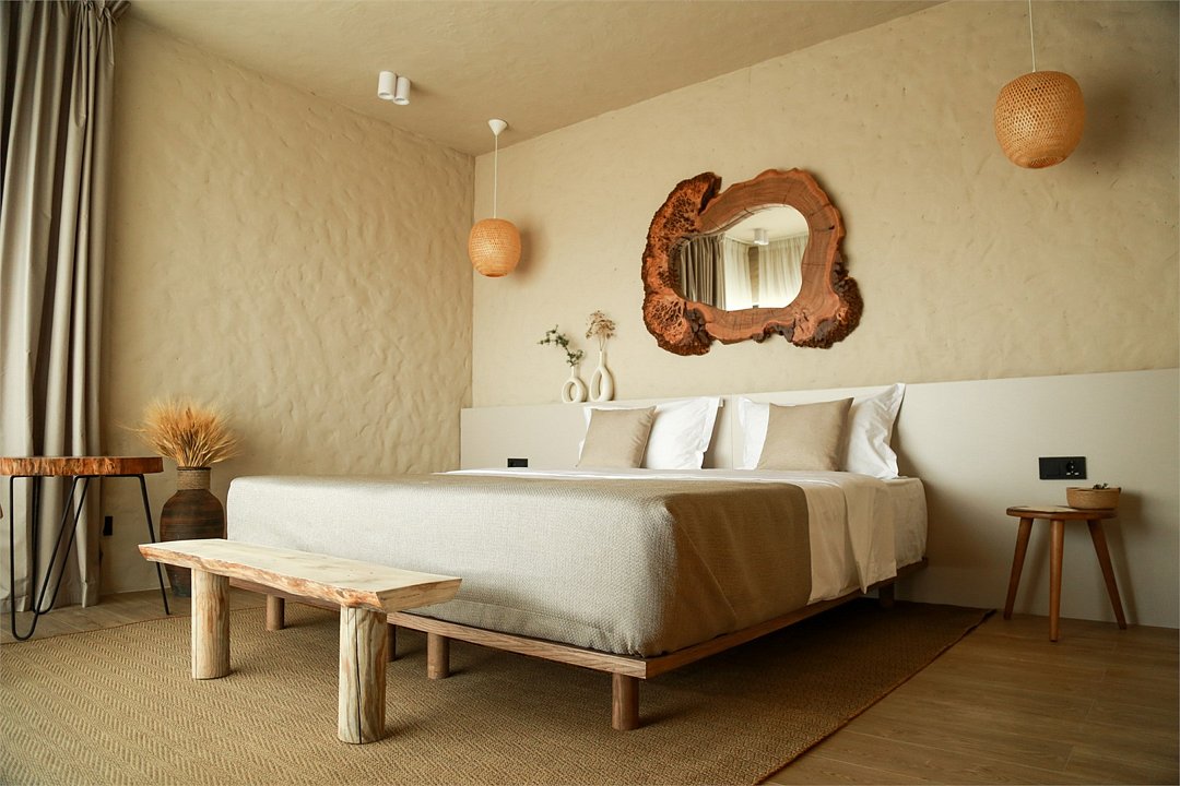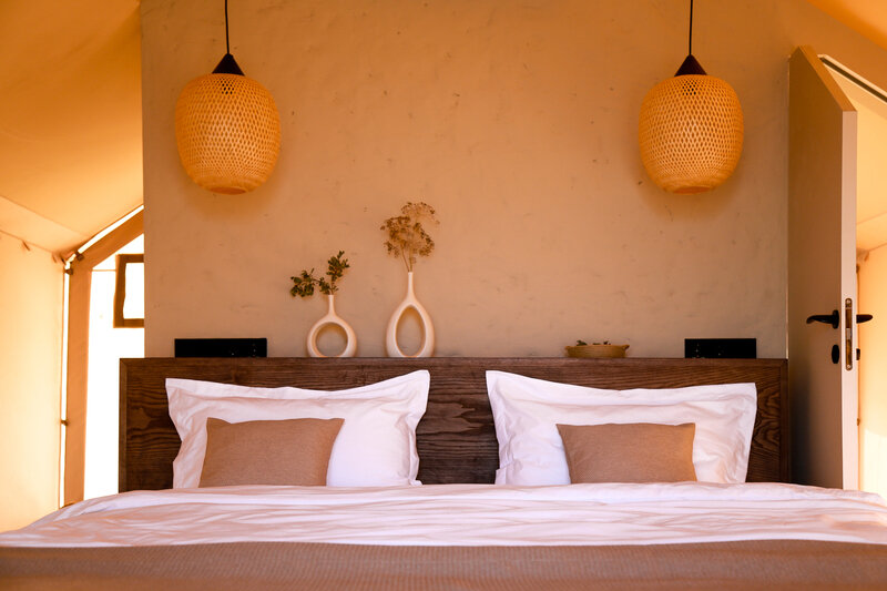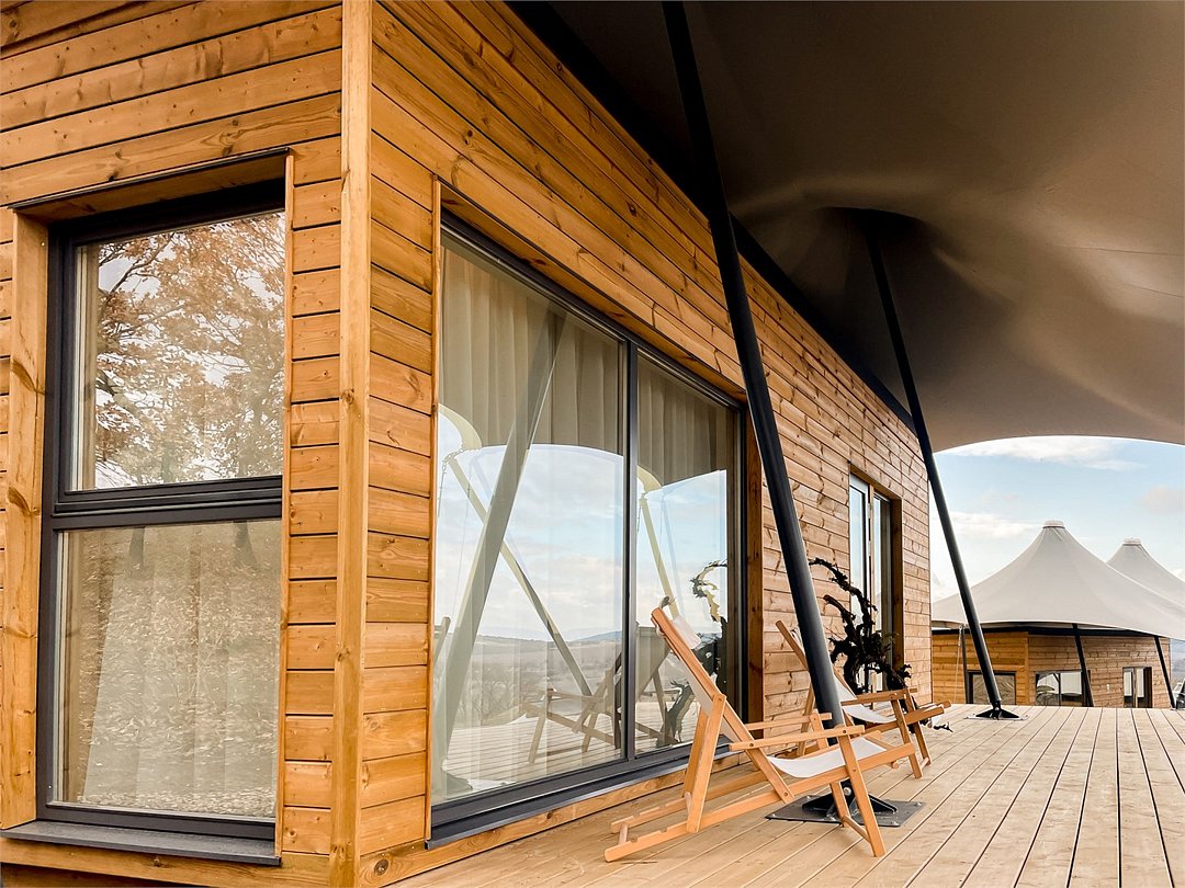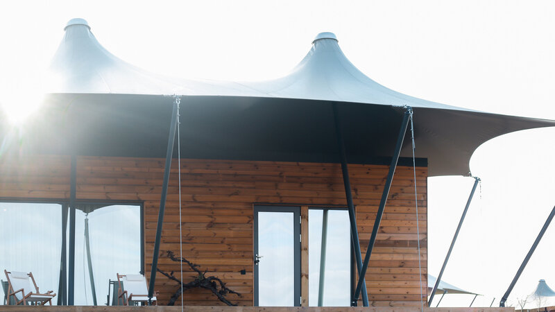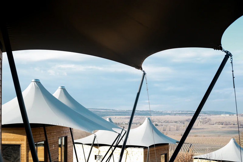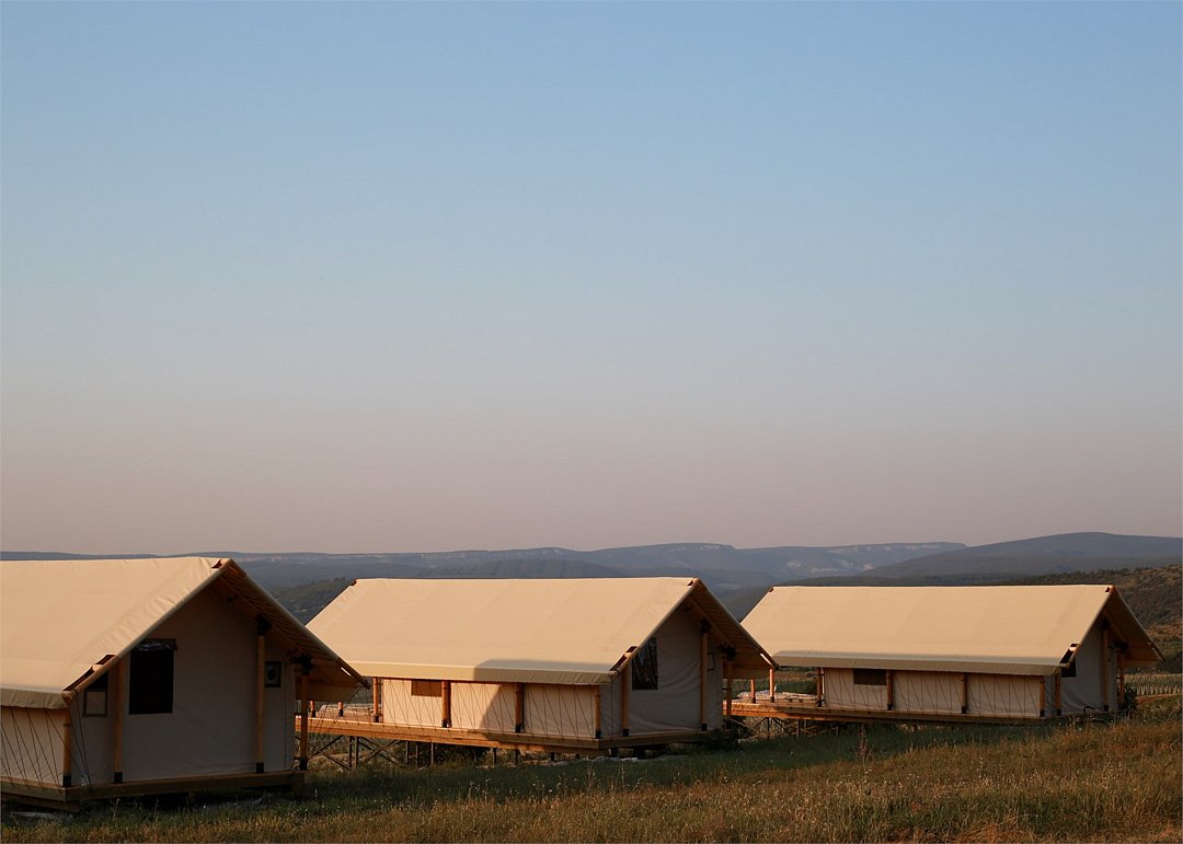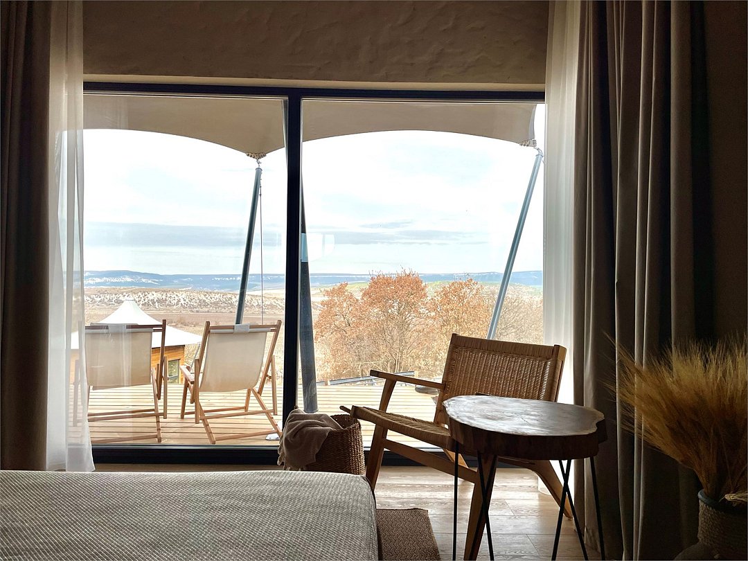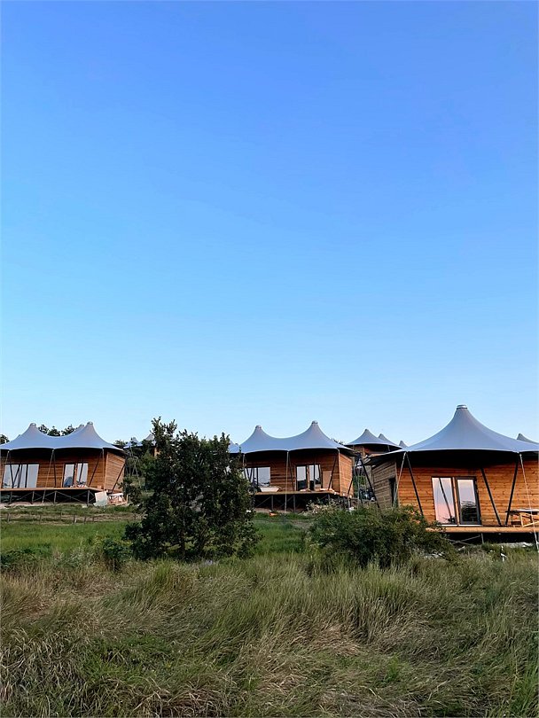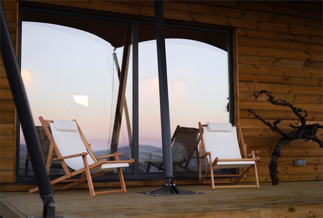 Шатры-тенты сделаны из непродуваемого материала и декорированы дизайнерской деревянной мебелью. В каждом есть большая двуспальная кровать, кондиционер, ванная комната и гардеробная. На террасе с видом на виноградники и холмы — кресла-лежаки, чтобы загорать, читать и любоваться природой.Услуги и удобства