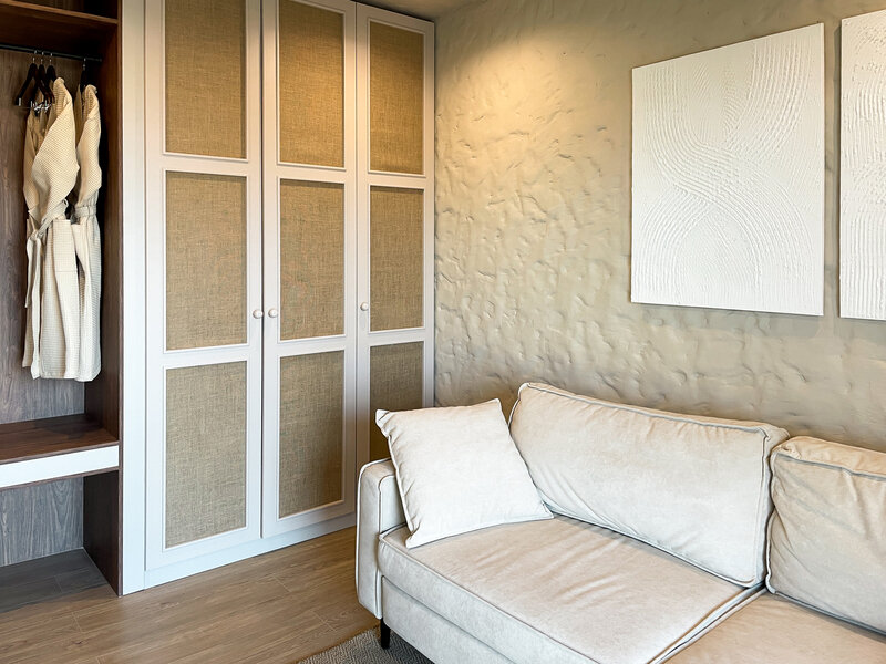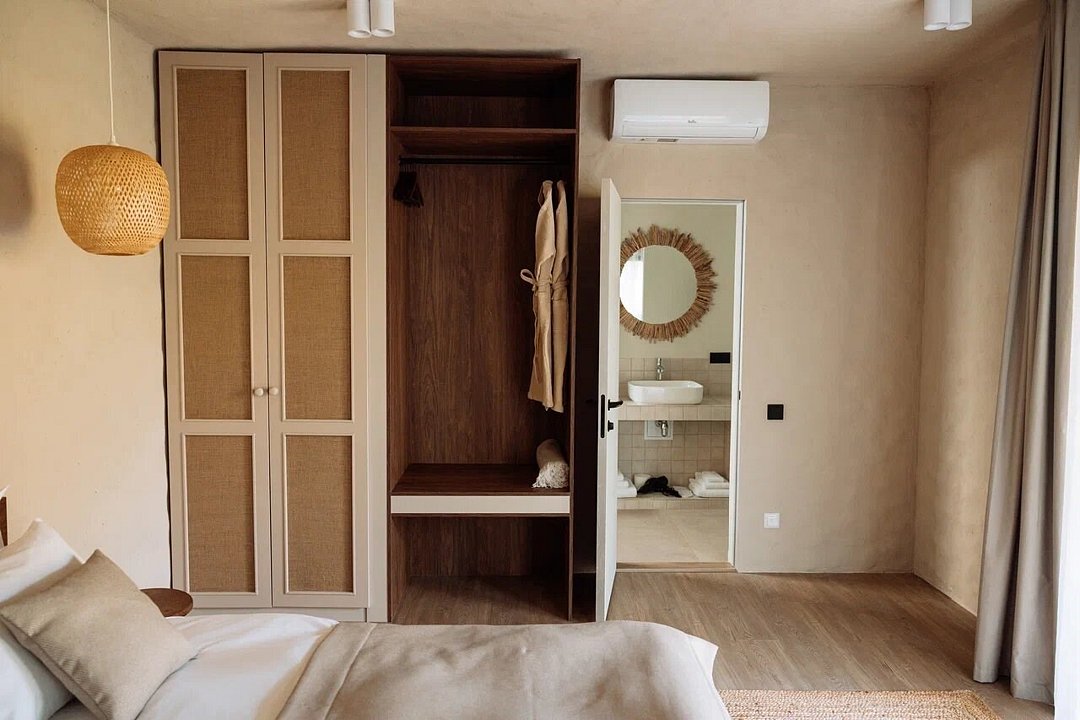 Wi-Fi, кондиционер, фен, халаты, банные полотенца, гигиенические средства, косметические средства, терраса, кровать «King size», гардеробная, журнальный столик, зеркало, эксклюзивная мебель, обслуживание номеров, сейф, питьевая вода, отдельный вход в номер, душ, вид на сад, кресло, тумба, туалет, мини-холодильник, москитная сетка, вид на горы, номер для некурящих, электронный консьерж 24/7В номере