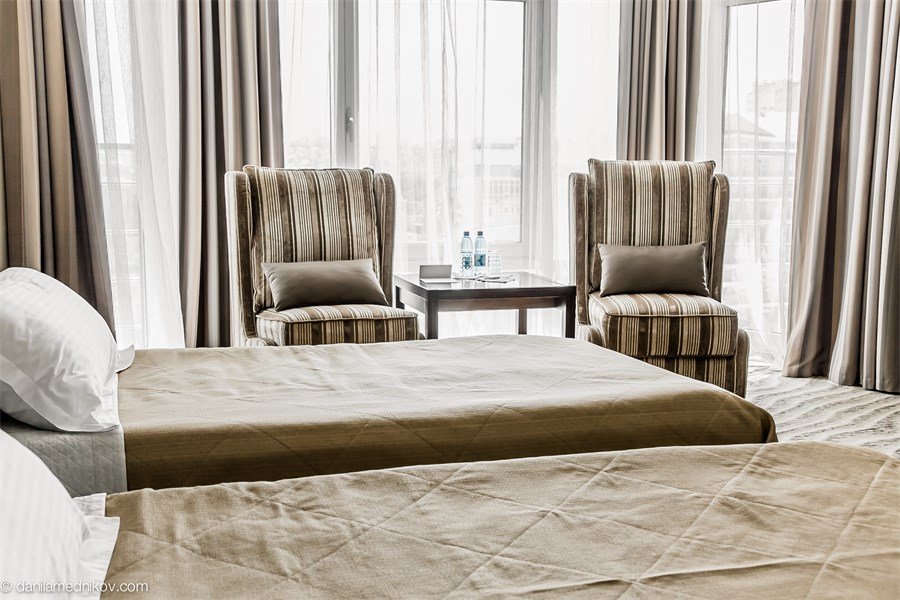 Номер Superior Twin (категория улучшенный стандарт) – один из самых популярных среди гостей отеля. Здесь предусмотрено все для комфортного отдыха и деловой поездки. Дизайн номера легкий и воздушный, выполненный в сдержанной цветовой гамме. Современная лаконичная мебель придает номеру домашний уют. Из окон открывается привлекательный вид на город.Услуги и удобства