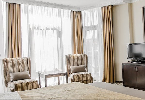 телевизор, кабельное телевидение, Wi-Fi, интернет, телефон, кондиционер, система климат-контроля, светильник, настольные лампы, фен, будильник, система безопасности, электронные замки, утюг, ванная комната, ванна, санузел, халаты, банные полотенца, тапочки, гигиенические средства, косметические средства, балкон, две полутораспальные кровати, гипоаллергенное белье, гладильная доска, детская кровать, диван, кресла, стулья, шкаф для одежды, вешалки, журнальный столик, письменный стол, багажная тумба, зеркало, мини-бар, письменные принадлежности, обслуживание номеров, информационная карта, меню, сейф, минеральная вода, унитаз, раковина, косметическое зеркало, питьевая вода, ковровое покрытие, отопление, душ, вид на город, кресло, центральное кондиционирование, можно с питомцамиВ гостиничном номере