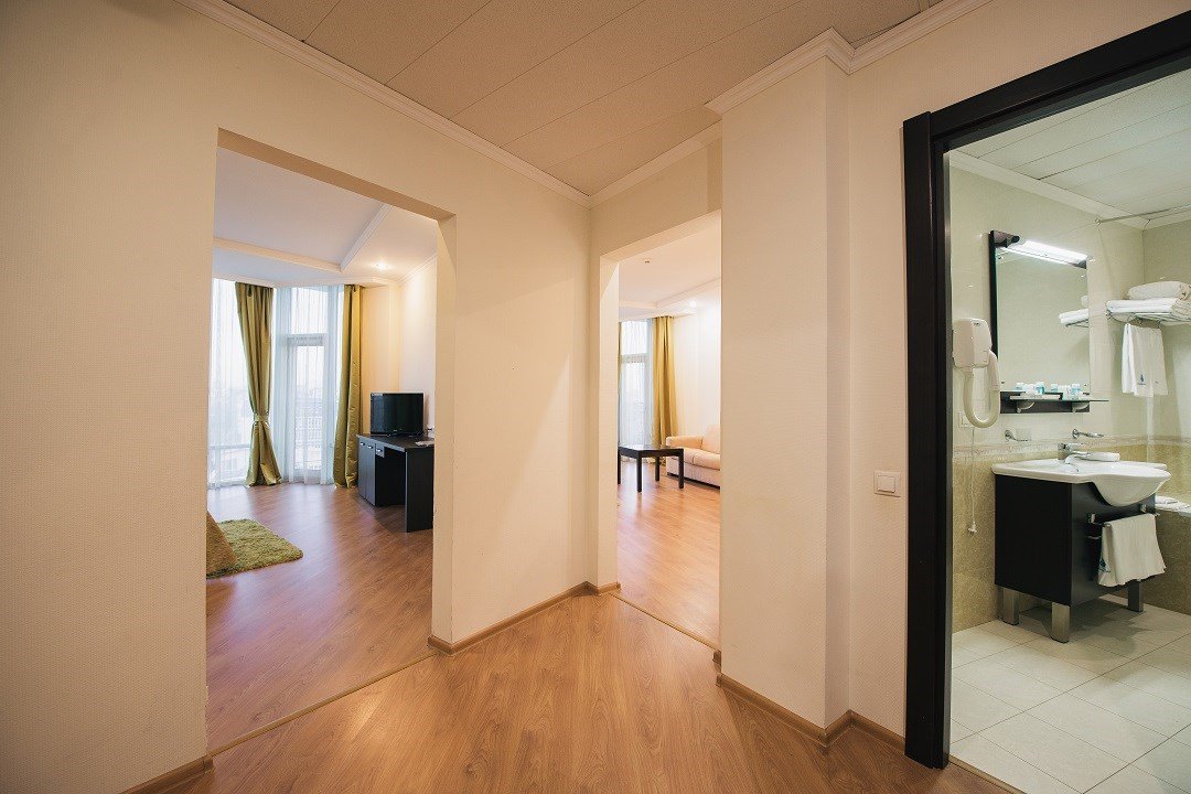 Двухкомнатный люкс - это выбор тех, кто ценит комфорт и респектабельность. Приятный дизайн и лаконичная обстановка гостиной и спальни позволят как отлично отдохнуть, так и плодотворно поработать. Также номер подойдет для семей с детьми. Он выполнен в приятных неярких тонах, оснащен всем необходимым для отпуска или деловой поездки. Из окон открывается привлекательный вид на город.Услуги и удобства