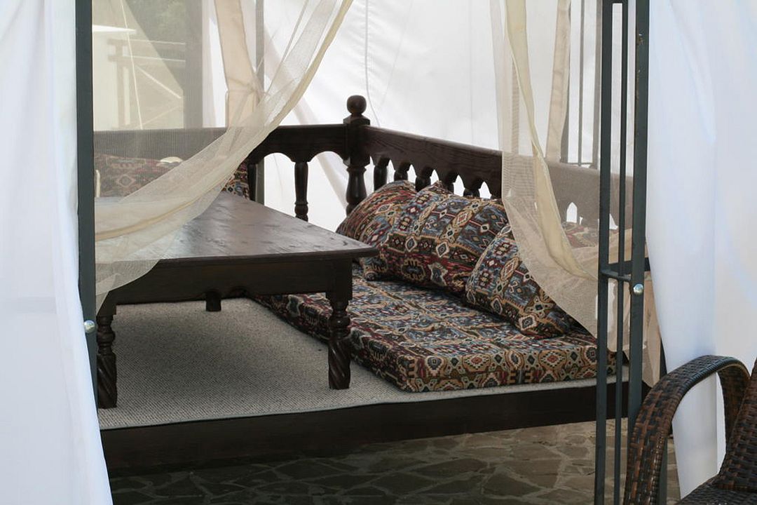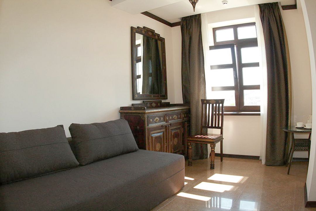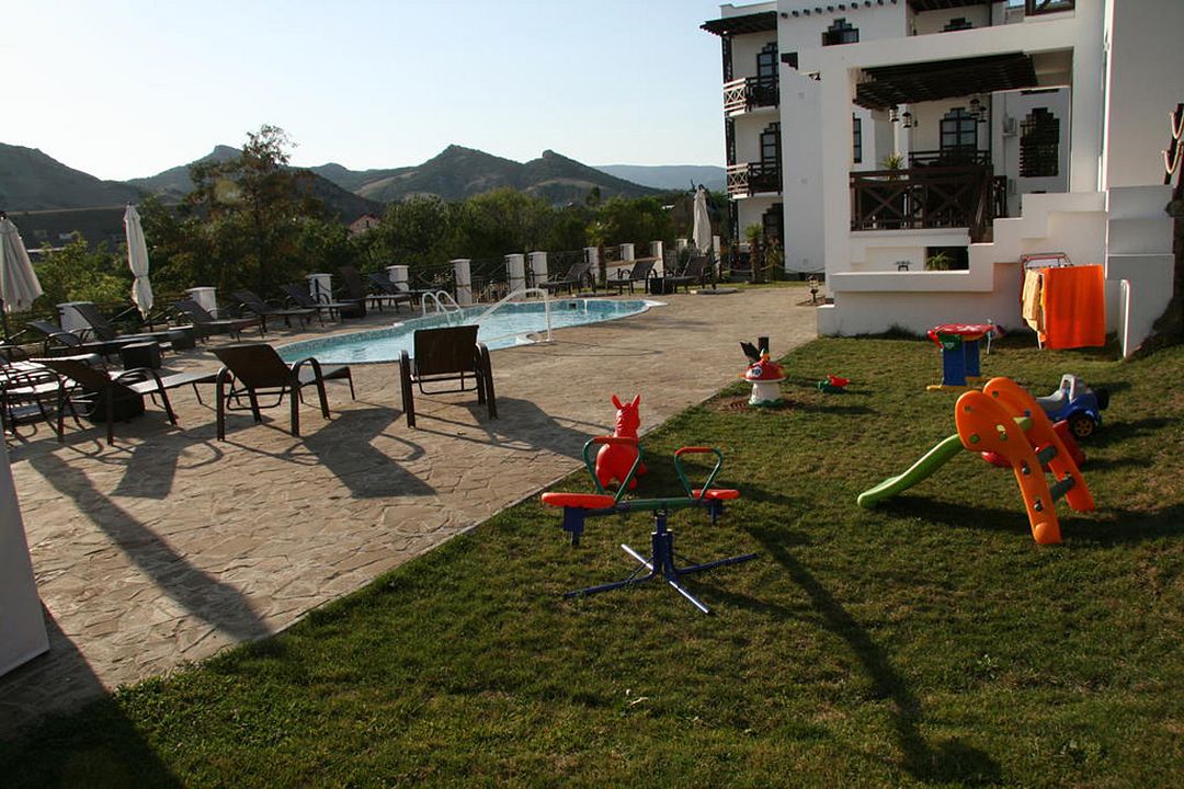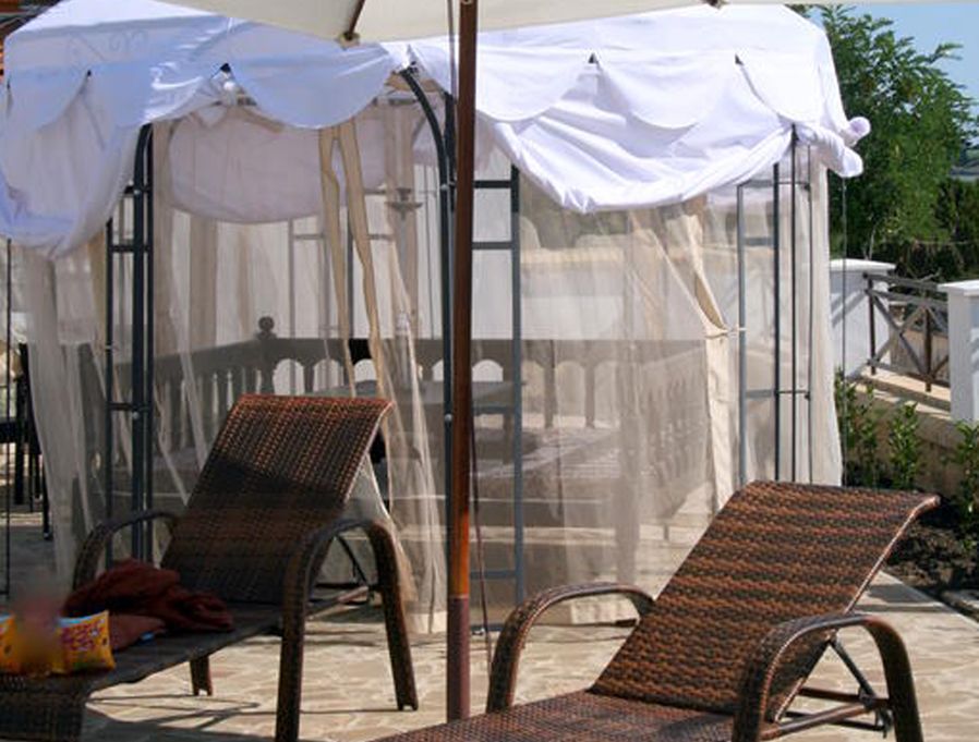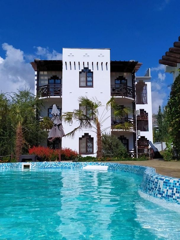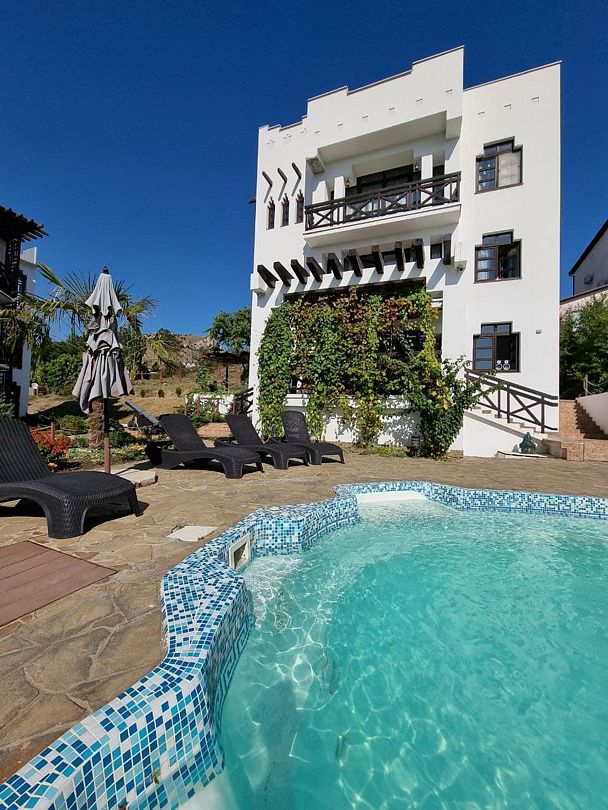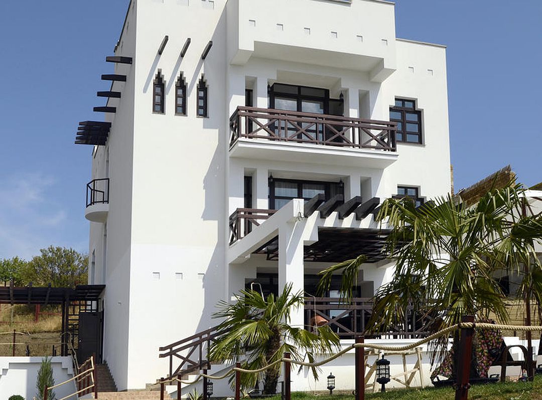 Гостиница расположилась на благоустроенной территории площадью 2000 кв.м. и включает в себя два трехэтажных белоснежных корпуса. Небольшой жилой фонд, рассчитанный на 45 человек, предлагает гостям однокомнатные номера Делюкс и двухкомнатные Сьют. В номерах есть все необходимое для хорошего отдыха — кондиционер, телевизор, электрочайник, в ванных комнатах есть фен и набор косметических принадлежностей.