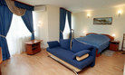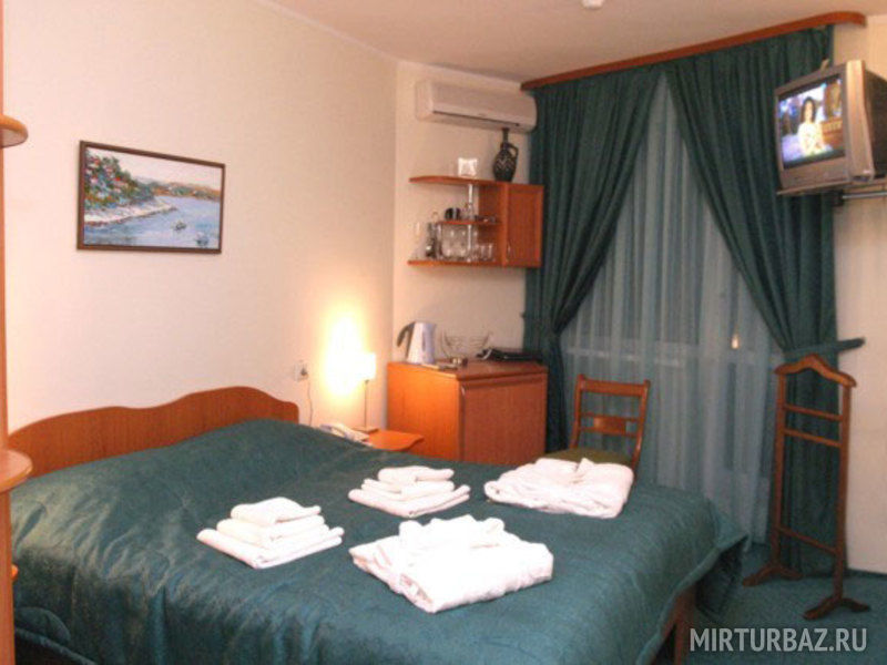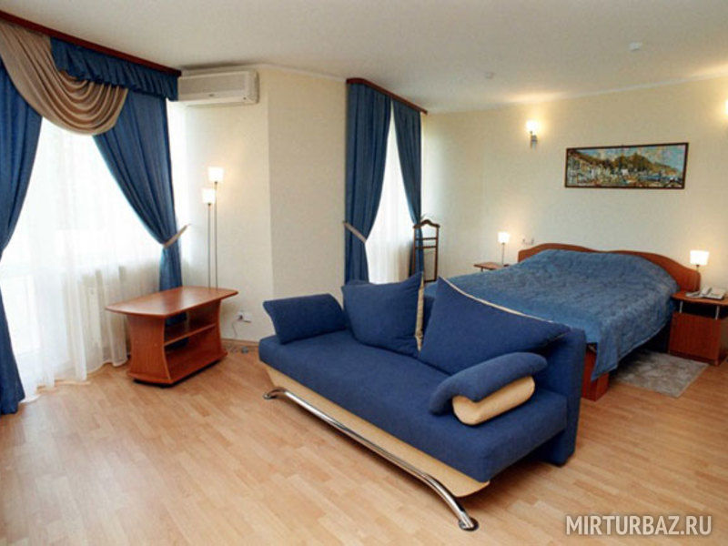 В номере: сплит-система, холодильник, мини-кухня, мини-бар, спутниковое телевидение, телефон, спальня оборудована большой двуспальной кроватью, в гостиной расположен раскладывающийся двуспальный диван, ванная комната (душевая кабина, санузел, биде, умывальник, фен), два балкона, современная корпусная мебель.