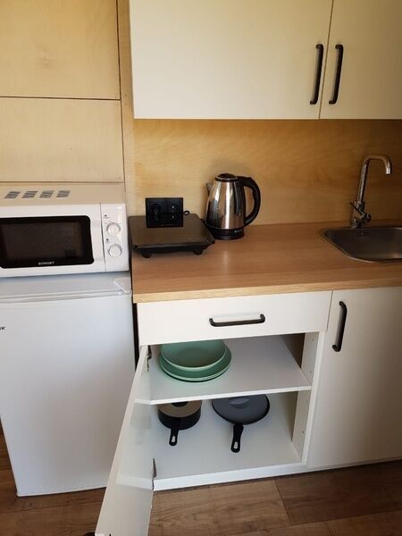 Описание номера: Мини-дом имеет отдельное расположение на территории загородного комплекса «Алимова балка». Из террасы и панорамного окна спальни мини-дома открывается завораживающий вид на горы Качи-Кальон и долину. Мини-дом состоит из спальни, кухонной зоны, ванной комнаты, террасы. В спальне: двуспальная кровать, ТВ, интернет, выдвижная детская кровать, кухонная зона с бытовой техникой (холодильник, микроволновая печь, индукционная плита, чайник, посуда, раковина), кухонный стол и стулья, кондиционер, большой вместительный шкаф. В ванной комнате: душевая зона, туалет, раковина, фен. Открытая терраса со столом и стульями, мангалом