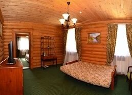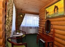 немного "обшарпанные" номера (ковры, ступеньки). Я понимаю, что это такая концепция бревенчатого дома, но... чуть не хватает уюта, ухоженности. Надо бы крючки на стену для верхней одежды сделать. Хотя в целом все хорошо, матрасы, постельное, полотенца - все хорошее и даже есть халаты.