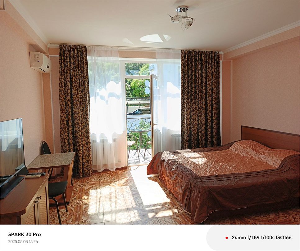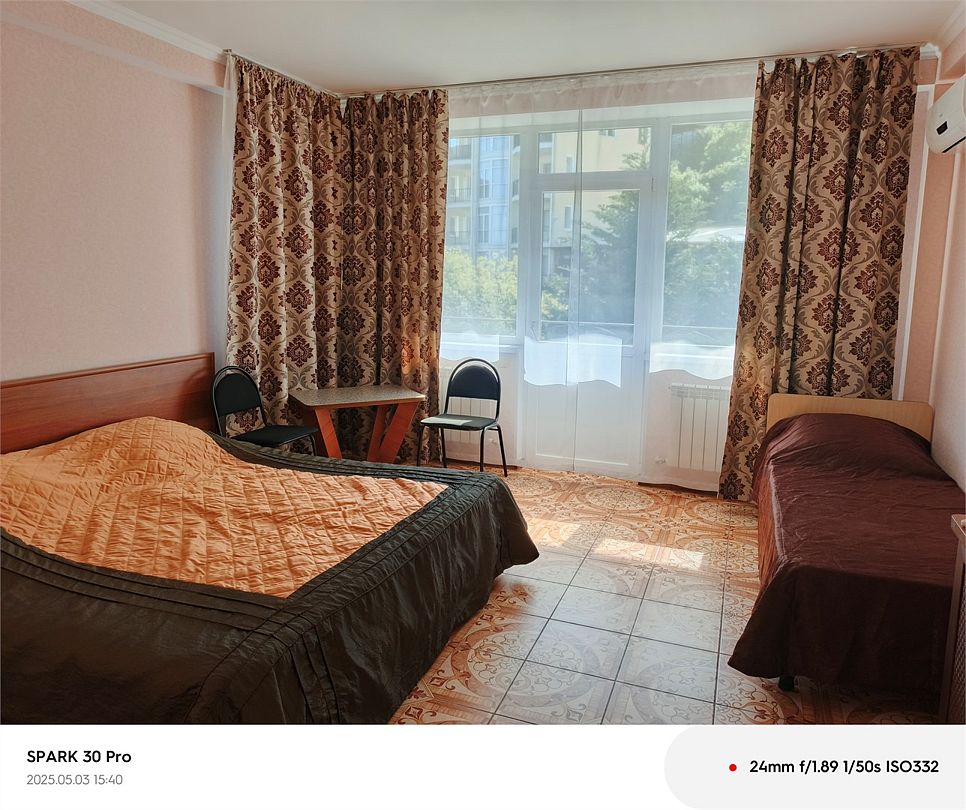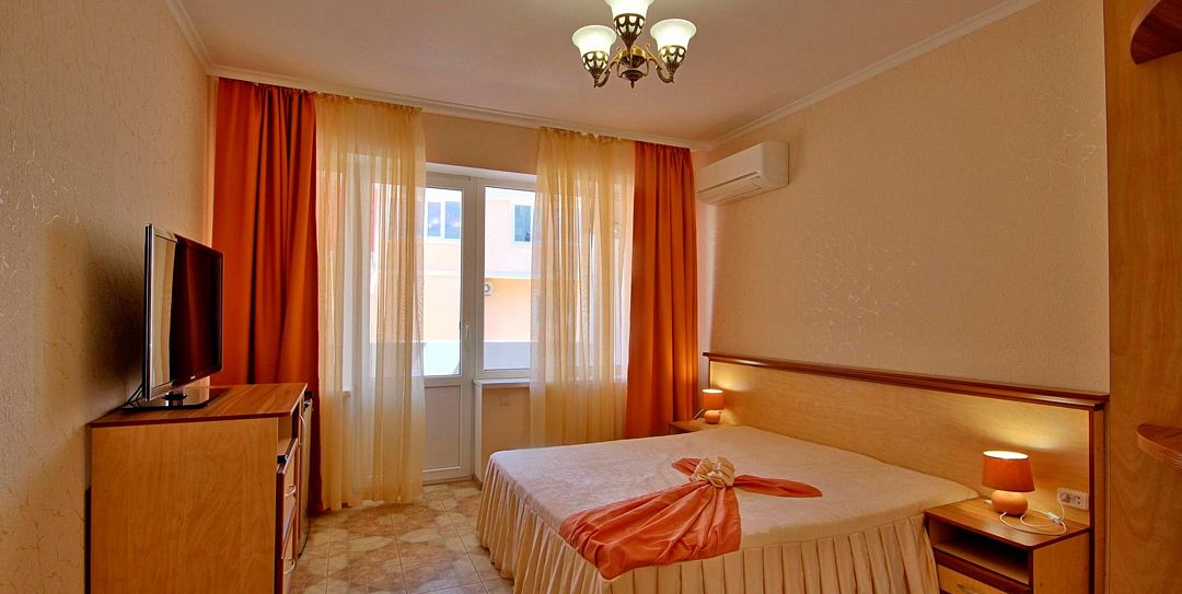 телевизор, Wi-Fi, балкон, двуспальная кровать, односпальная кровать, набор посуды, сейф, чайник, сушилка для белья, гостиничная парфюмерия, можно с питомцамиВ гостиничном номере