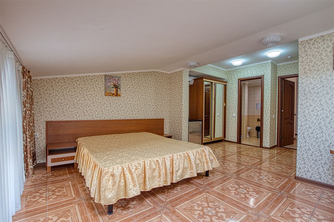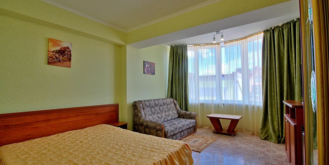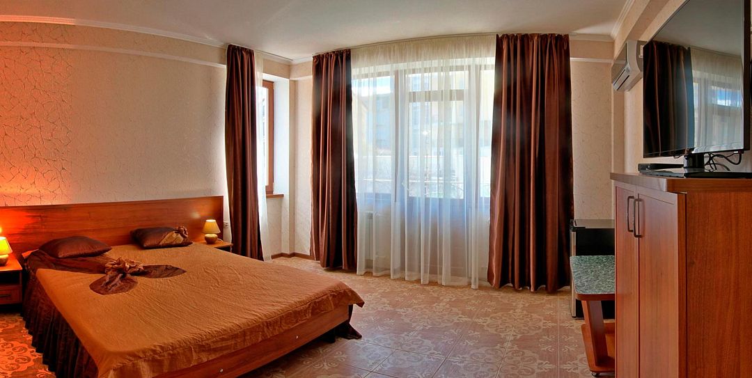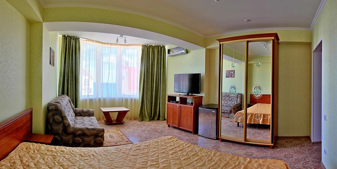 Путешествие с семьейПрекрасный отдыхМы отдыхали здесь большой семьей с сыном 4 лет и бабушкой. Все очень довольны. Номера чистые,современный ремонт, есть кондиционер, чайник, холодильник, набор посуды. Постель комфортная,есть одеяла. До моря идти совсем недалеко, все успешно справлялись с дорогой. На море свои лежаки и зонтики, их всегда хватало. Пляж на территории санатория Морской уголок. Сам санаторий выглядит удручающе, зато есть огромная песочница с зонтами,где сын с удовольствием проводил все дни, завел друзей. Так же есть воллейбольная площадка, муж каждый день играл в воллейбол.