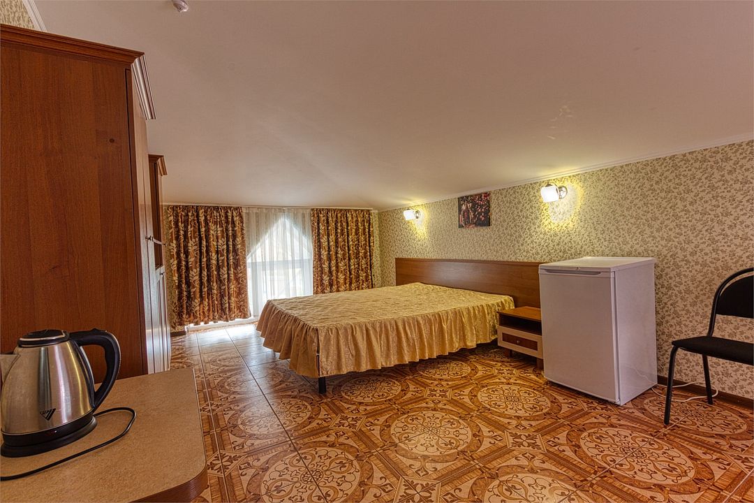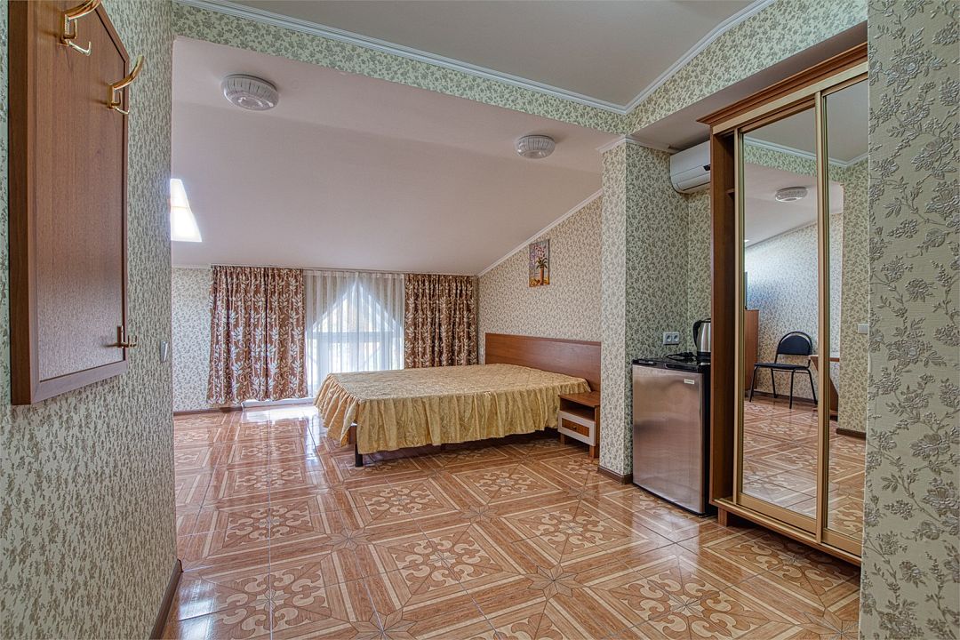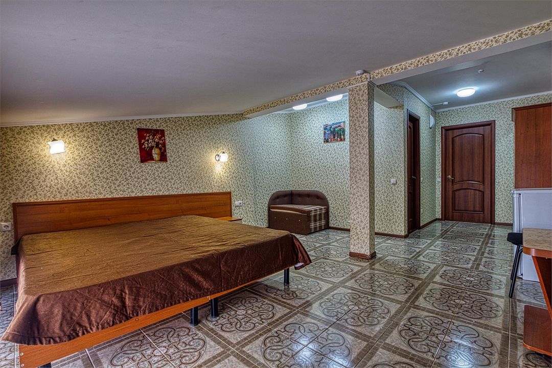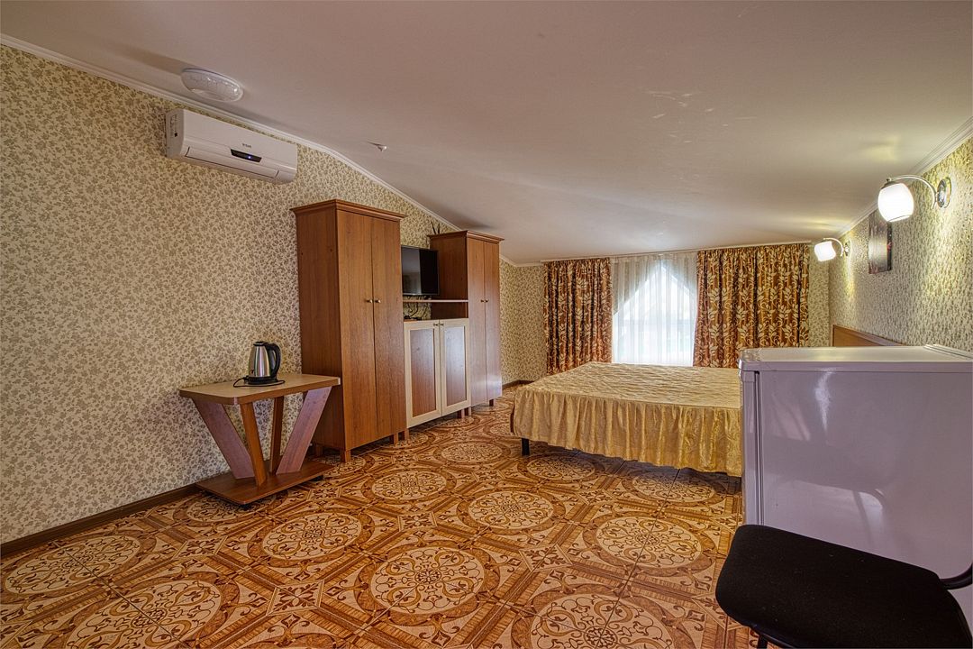 Wi-Fi, холодильник, кондиционер, тапочки, двуспальная кровать, сейф, чайник, диван-кровать, гостиничная парфюмерия, можно с питомцамиВ гостиничном номере