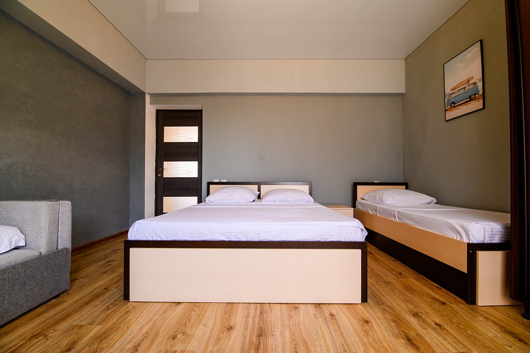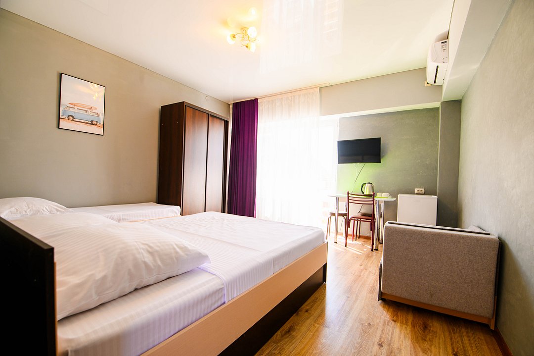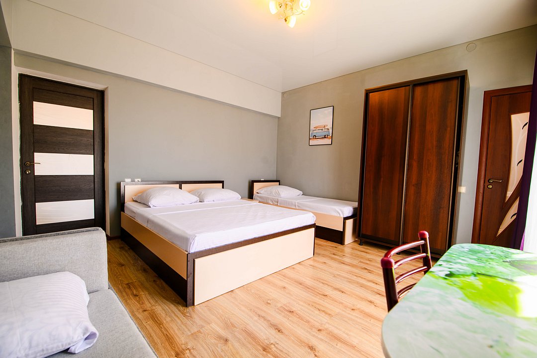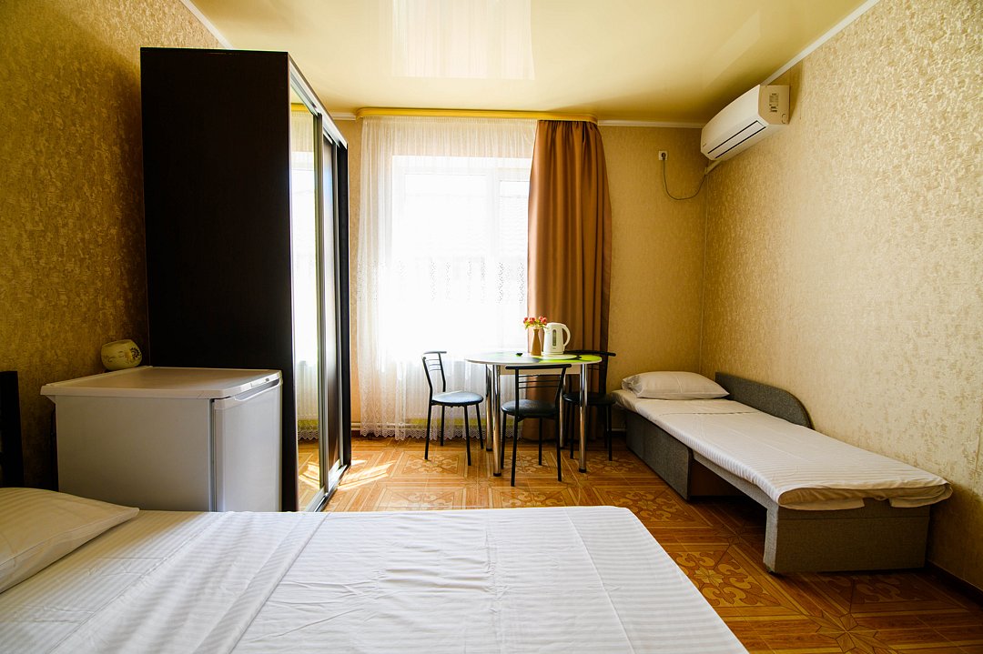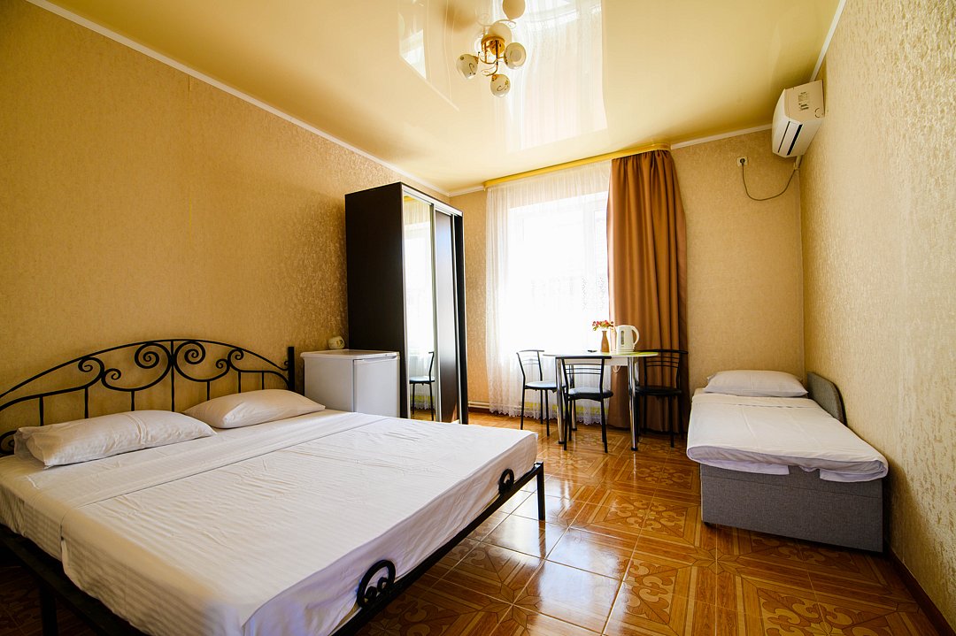 Гостевой дом «Альянс» — это идеальное место для отдыха, расположенное всего в 10-12 минутах ходьбы от моря. Здесь вы сможете насладиться свежим морским воздухом и красотой природы, не покидая уюта своего номера. В «Альянс» предлагаются номера стандартного класса, которые обеспечивают все необходимые удобства для комфортного проживания. Апартаменты: Для тех, кто предпочитает больше пространства, доступны апартаменты площадью 46 квадратных метров, идеально подходящие для семьи или группы друзей. Четырехместный номер с балконом: Также в гостевом доме есть четырехместный номер с балконом, где можно насладиться утренним кофе или вечерним закатом.