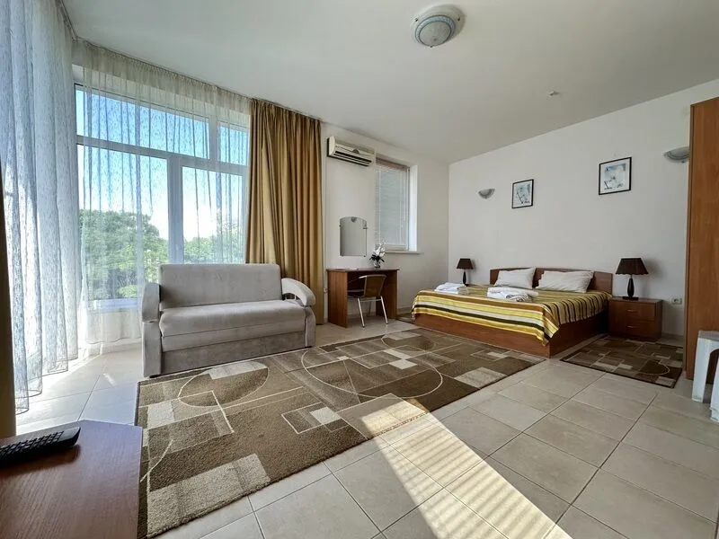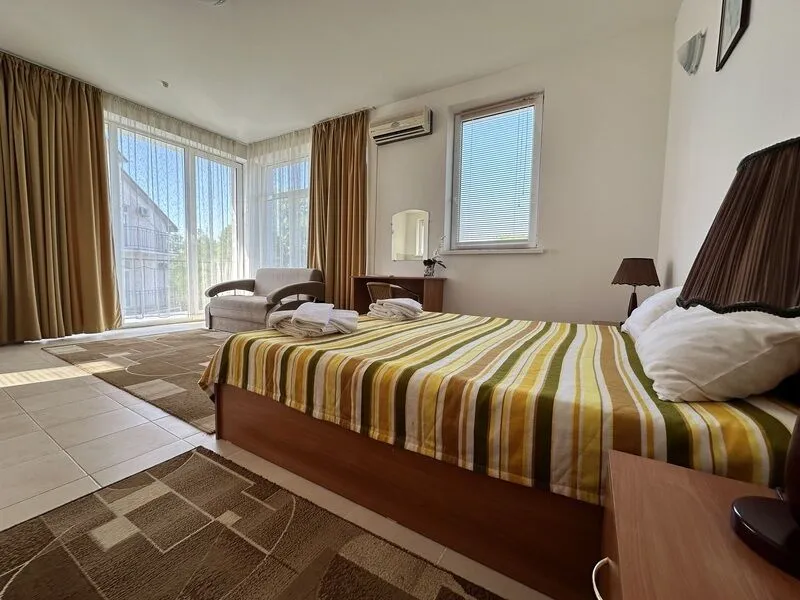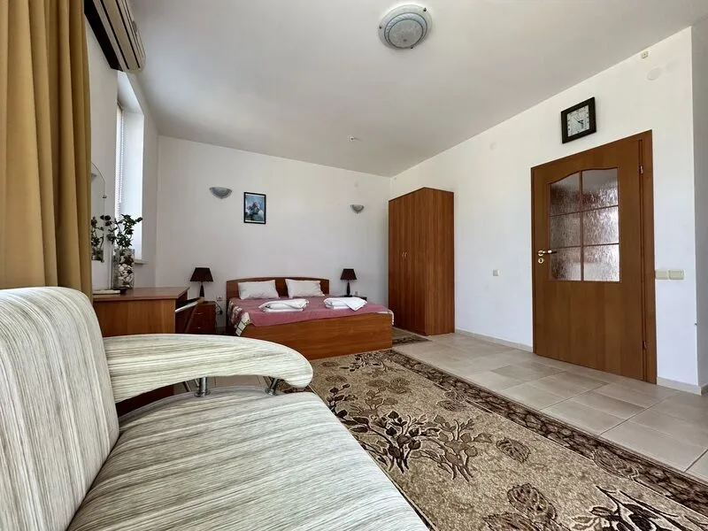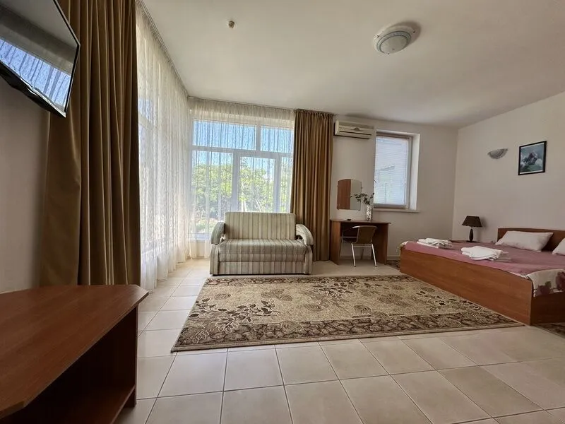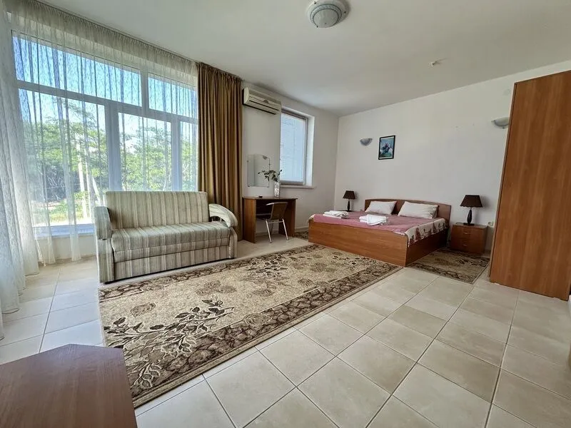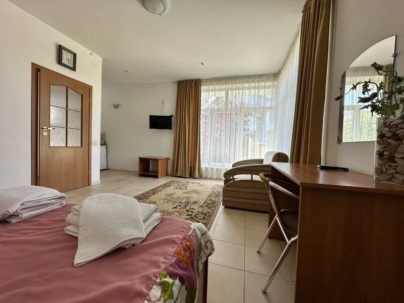 Рядом пляж, кинотеатр, Екатерининская миля, остановки общественного транспорта. Расстояние до аэропорта — 56,7 км, до железнодорожного вокзала — 5 км.