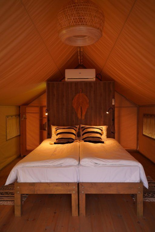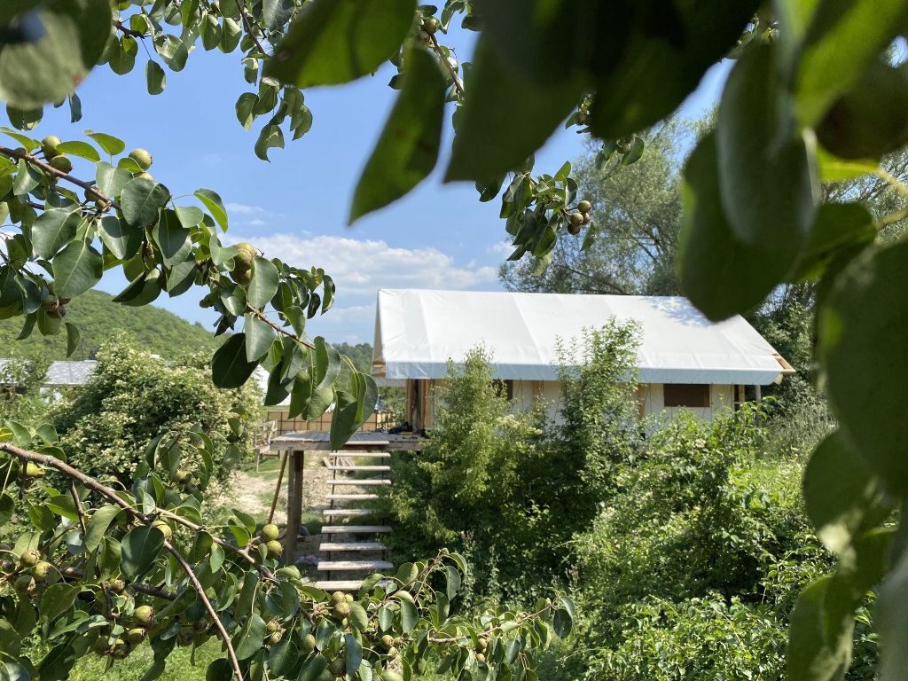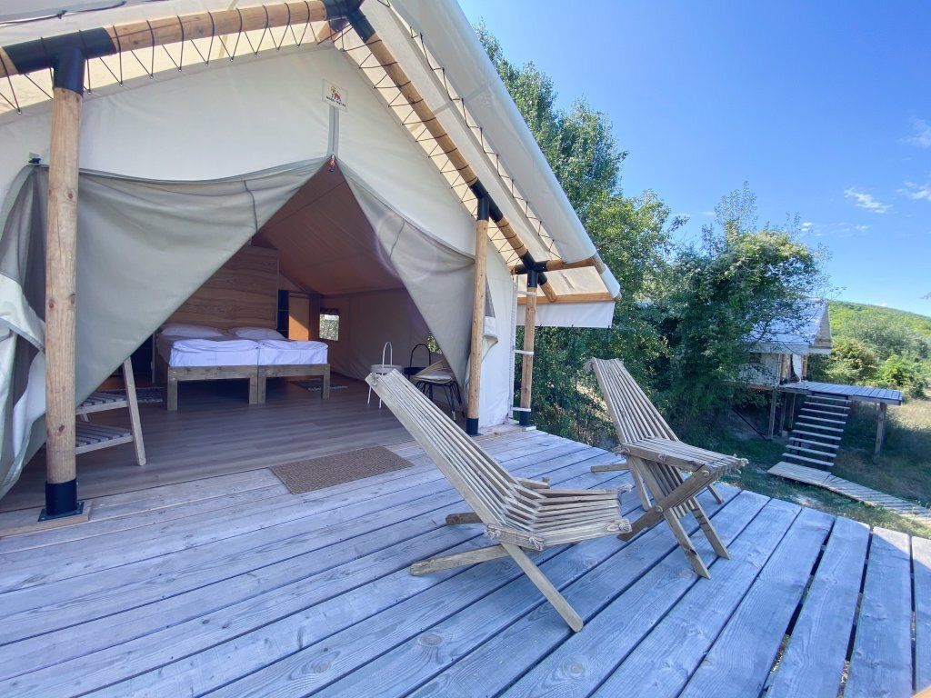 Для проживание предлагается 13 шатров, оборудованных всем, что может понадобиться во время отдыха на природе. Имеется личная туалетная и душевая комната, сплит-система и зона отдыха. Все шатры располагаются на отдельных площадках, в немалом удалении друг от друга, что позволит всем проживающим ощутить атмосферу приватности и уединения.