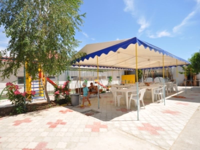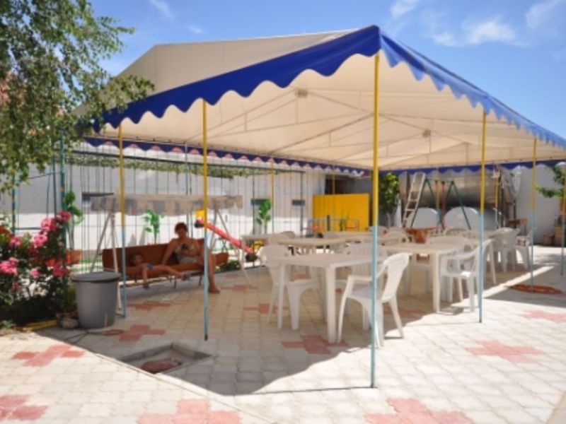 Пансионат представляет собой 3-этажное здание с обширным двором, утопающим в зелени деревьев, кустарников и цветочных клумб. Для удобства гостей, приехавших на собственном автомобиле, рядом с пансионатом расположена парковка. Во дворе находятся уютные беседки для отдыха со столом и стульями и мангал, где можно приготовить ароматные шашлыки и барбекю, который находится в свободном доступе гостей пансионата. Для маленьких постояльцев на территории пансионата «Анюта» находится детская площадка с песочницей, игрушками и качелями.