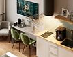 Уютный и стильный номер с продуманным до мелочей дизайном отлично подойдет как для деловых путешественников, так и для туристов. В номере одна большая двуспальная кровать (160*200 см) или две односпальные кровати (80*200 см), есть все необходимые для комфортного проживания – телевизор с плоским экраном, Wi-Fi, мини-кухня с индукционной плитой, вытяжкой и набором посуды, чайный островок, мини-холодильник, сейф, кондиционер, санузел с душевой, фен, водонагреватель, косметические средства, тапочки, набор полотенец для каждого гостя, махровые халаты, электронные замки, зеркало с подсветкой в полный рост. Есть отдельная рабочая зона. Оптимальный вариант для гостей, рационально подходящих к выбору номера. Уюта добавляет текстильное оформление в виде плотных портьер и подушек.