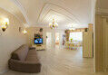 Трехкомнатные апартаменты на 2 этаже 3 этажного здания. Вид во двор. В распоряжении гостей 2 изолированные спальни с 2-х спальными кроватями и выходом на балкон с летней мебелью. Гостиная – студия с диваном, полностью оборудованной кухней с плитой, холодильником, электрочайником, микроволновой печью, обеденной зоной. Кровати (180 * 200) и диван-кровать оснащены ортопедическими матрацами. Каждая комната оснащена кондиционером, телевизором с плоским экраном. Имеется сейф, WI-FI. Общая площадь составляет 60 кв.м. + 6 кв.м. балкон. Максимальное размещение – 4 взрослых + 1 ребенок