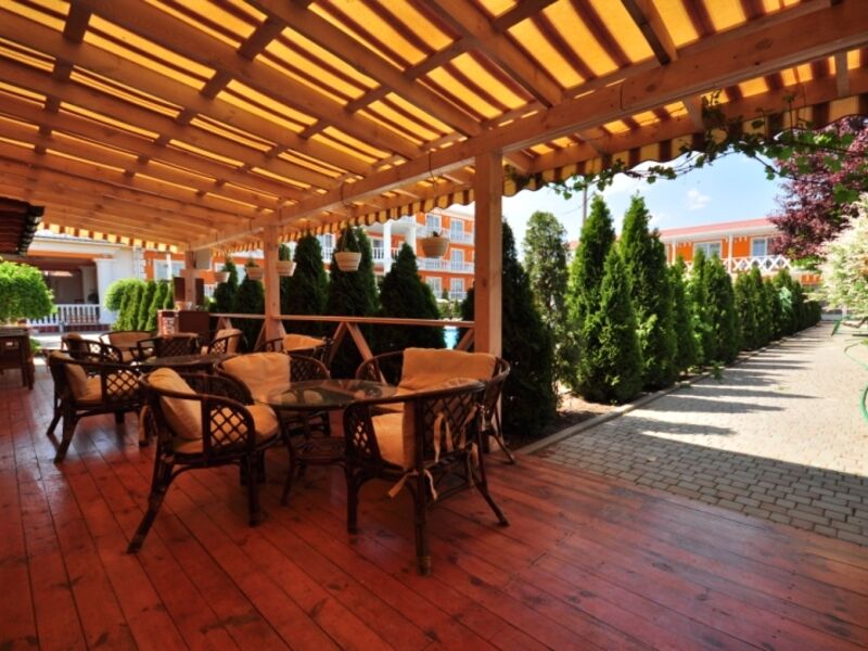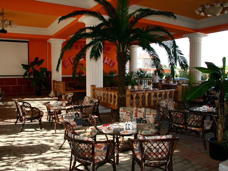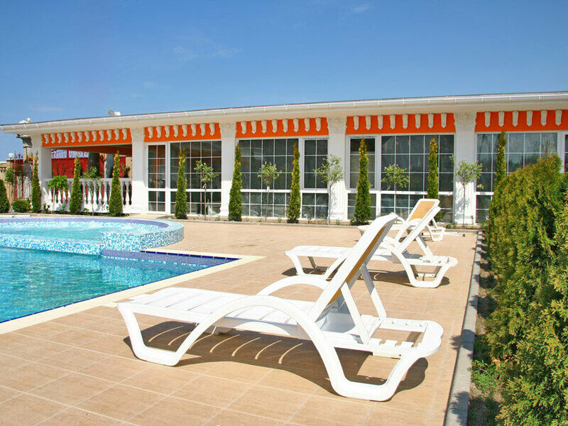 Территория бассейна оборудована удобными шезлонгами, тенистыми навесами и уютными беседками, которые помогут избежать солнечных ожогов и обеспечат равномерный загар.Кроме того, отель предлагает прохладительные напитки и по желанию гостей организует подачу аппетитного шашлыка прямо к бассейну.