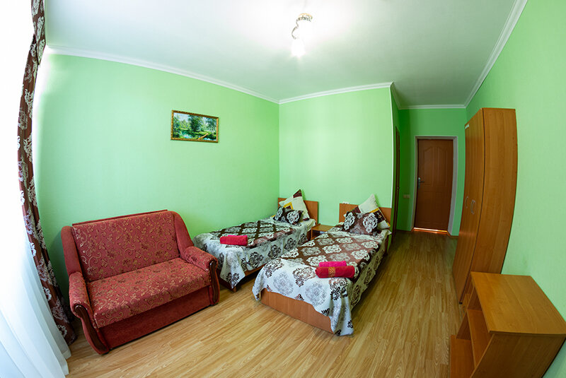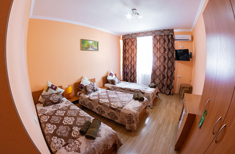 Трехэтажный корпус отеля разместился на закрытой территории среди небольшого хвойного бора. Гостей ожидают стандартные номера, в общей сложности рассчитанные на 33 отдыхающих. В каждом номере есть душ, санузел, кондиционер, телевизор.