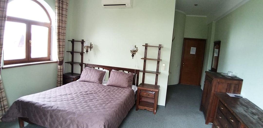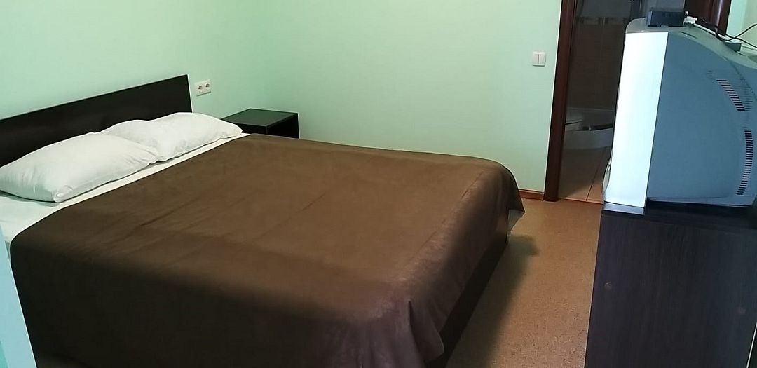 номер с кондиционером, с двуспальной кроватью; со спутниковым ТВ, холодильником, санузлом с горячей и холодной водой круглосуточно (умывальник, туалет, душ, теплый пол), стационарное отопление.