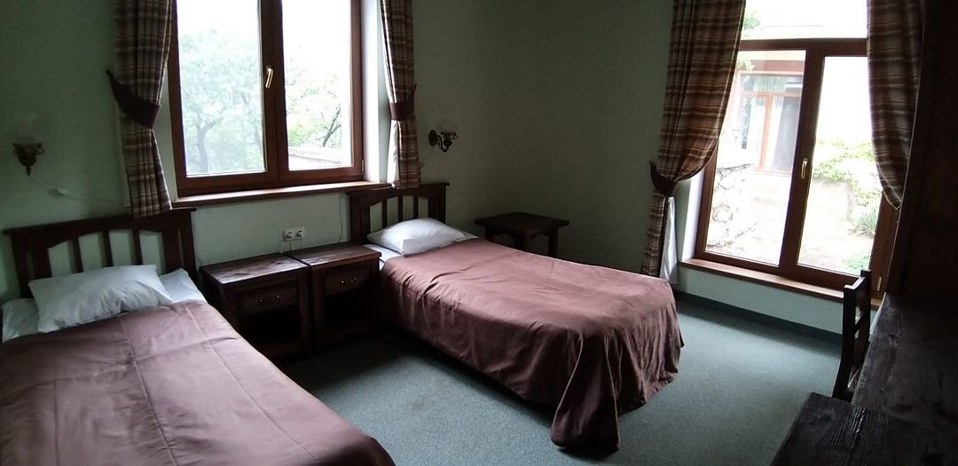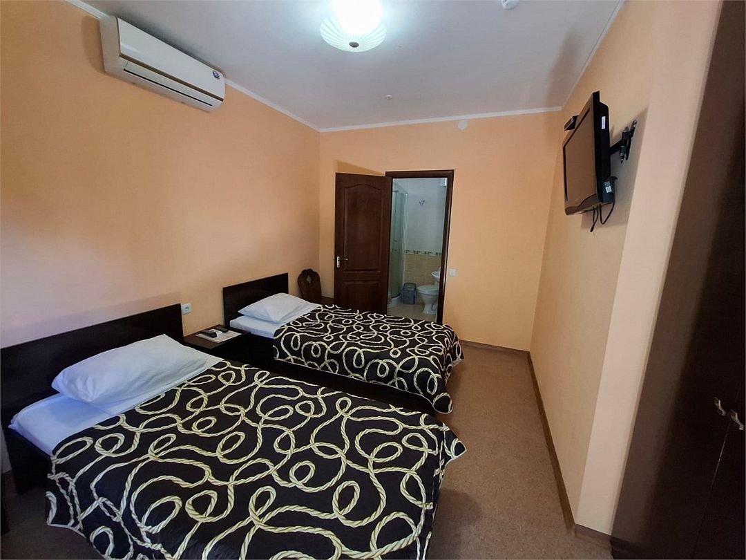 Двухместные номера, в одноэтажной вилле. В номерах 2 полуторные кровати , холодильник, TV, кондиционер, санузел в номере с душевой кабиной, WI-FI.Услуги и удобства