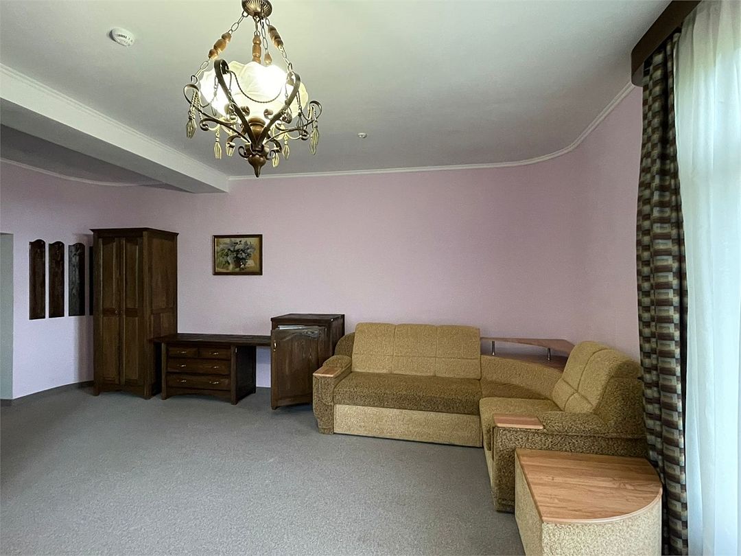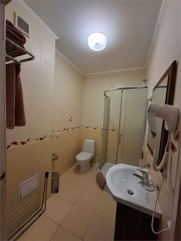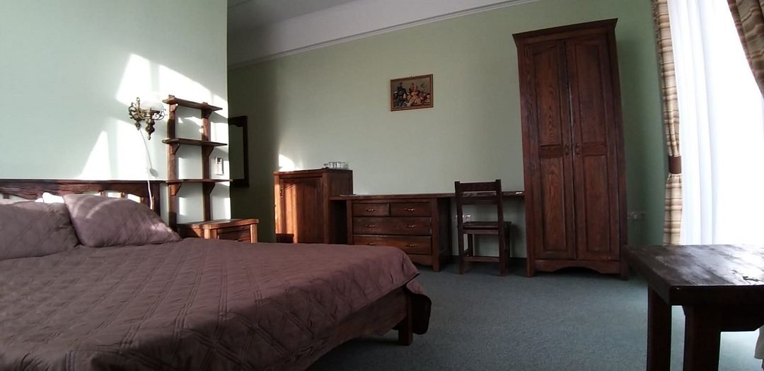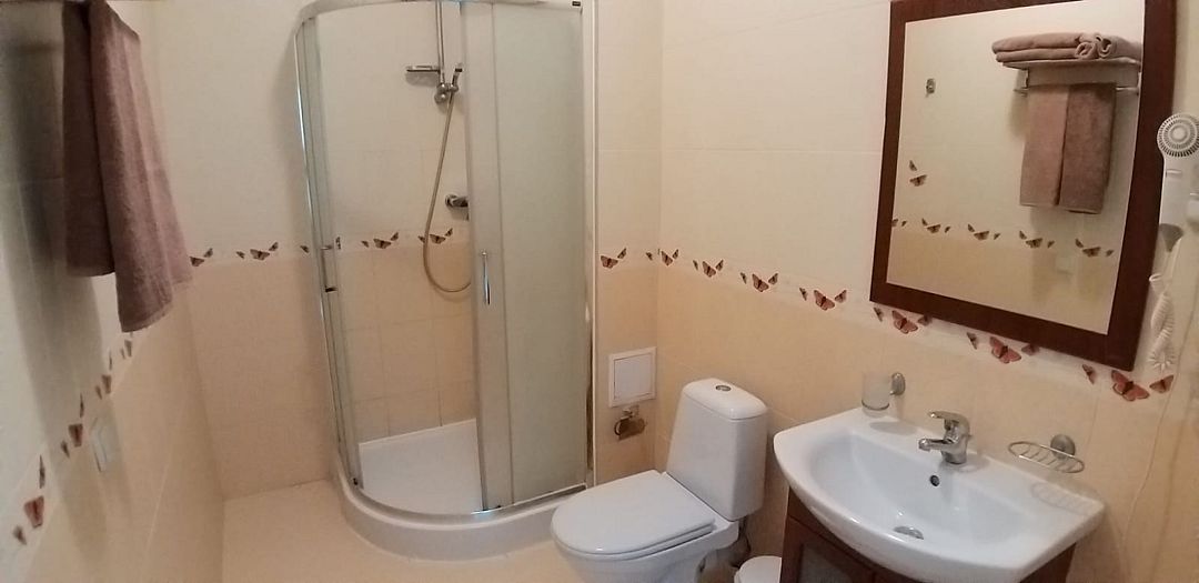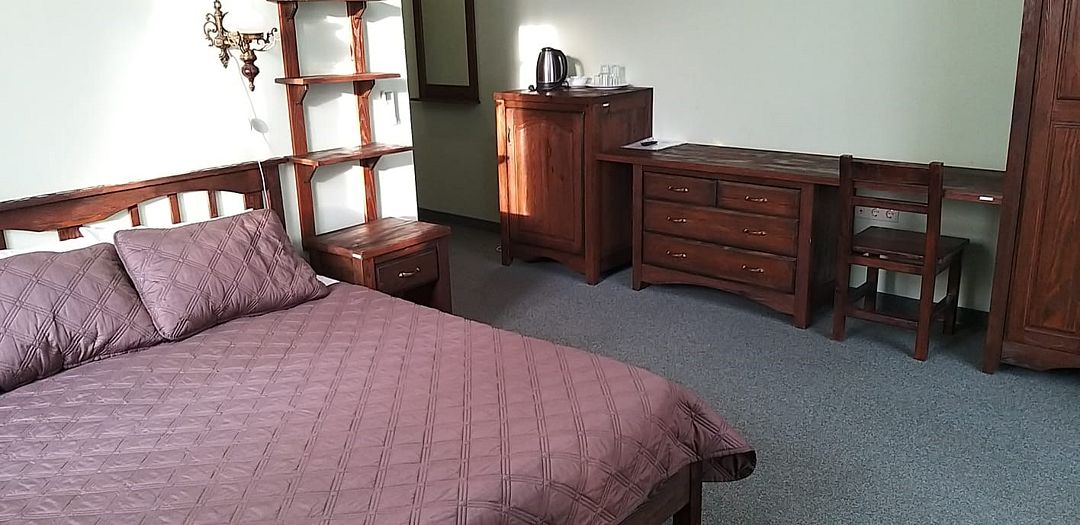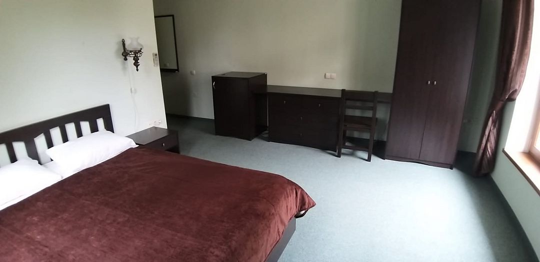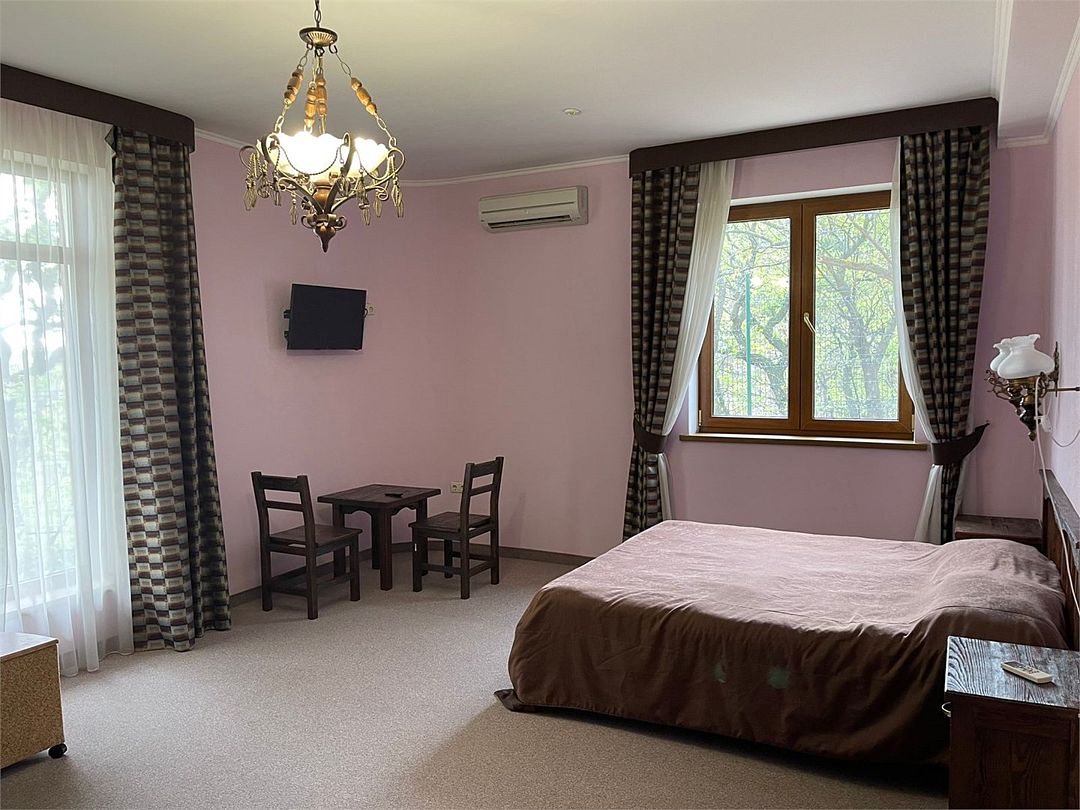 номер с кондиционером, спальня с двуспальной кроватью и гостиная с мягким уголком; со спутниковым ТВ, холодильником, санузлом с горячей и холодной водой круглосуточно (умывальник, туалет, душ).