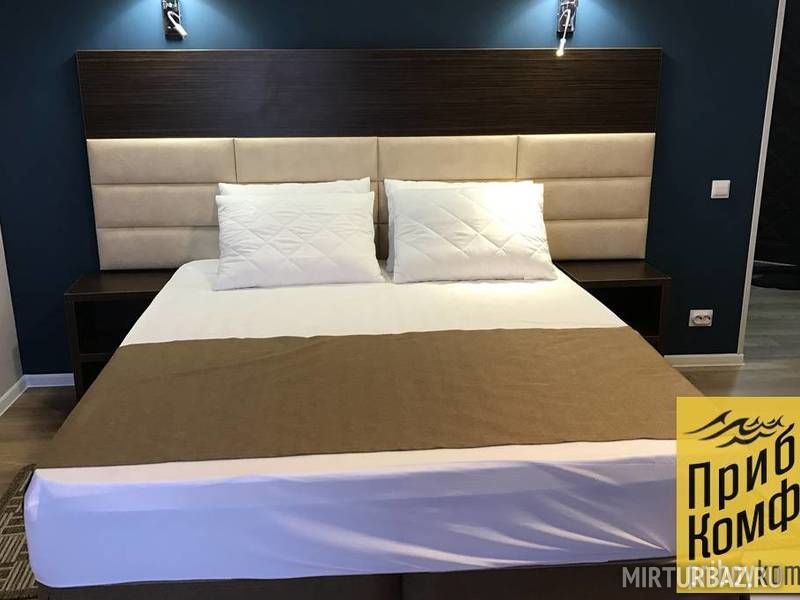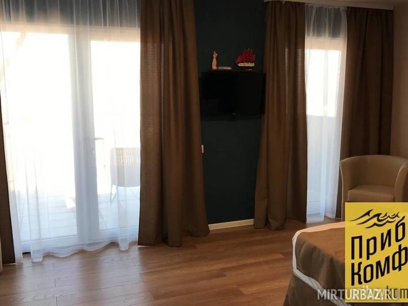 Для размещения отдыхающих предусмотрено 3 типа номеров разных категорий, среди них есть такие варианты — трехместный и четырехместный люксы, а также двухуровневые апартаменты с видом на море.