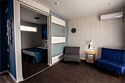 Однокомнатный номер площадью 26 кв метров с отдельным входом в номер и балконом. Оборудован двуспальной кроватью / 2 односпальные кровати, двухъярусной кроватью, телевизором с функцией Smart TV, wifi, кондиционером, электрическим чайником, холодильником, сейфом и феном, утюгом и гладильной доской. С/у в номере (душевая зона без поддона, умывальник, унитаз, фен) Вид из окон на бассейн, на территорию, боковой вид на море и частично на Розовое озеро. Номер рассчитан на комфортное размещение 4 человек. Размещение на доп местах не предусмотрено. 4 основных места. Номер расположен на 1 этаже.Услуги и удобства