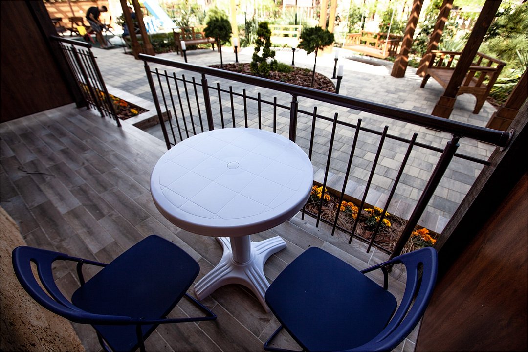 Однокомнатный номер площадью 20 кв метров с отдельным входом в номер и выходом на балкон. Оборудован двуспальной кроватью / 2 односпальные кровати, односпальным диваном спальное место 65х175 см, плазменным телевизором с функцией Smart TV, wifi, кондиционером, электрическим чайником, сейфом и феном, утюгом и гладильной доской. С/у в номере (душевая зона без поддона, умывальник, унитаз, фен) Вид из окон на бассейн и боковой вид на море и Розовое озеро. 3 основных места Номер расположен на 2 этаже.Услуги и удобства