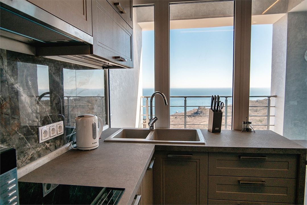 Просторные апартаменты с прекрасным видом на море и "Медведь гору", есть шикарный балкончик Одно бронирование - одно парковочное место Депозит при заселении 5000 и 10000 если собачкой(собачки только до 10 кг)Услуги и удобства
